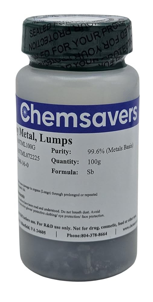 Synonyms: N/A CAS: 7440-36-0 Molecular Formula: Sb Molecular Weight: 121.76 g/mol Test Result Description Gray lumps Assay (Metals Basis) 99.6% Copper (Cu) 0.04% Identification Passes test Iron (Fe) 0.006% Lead (Pb)