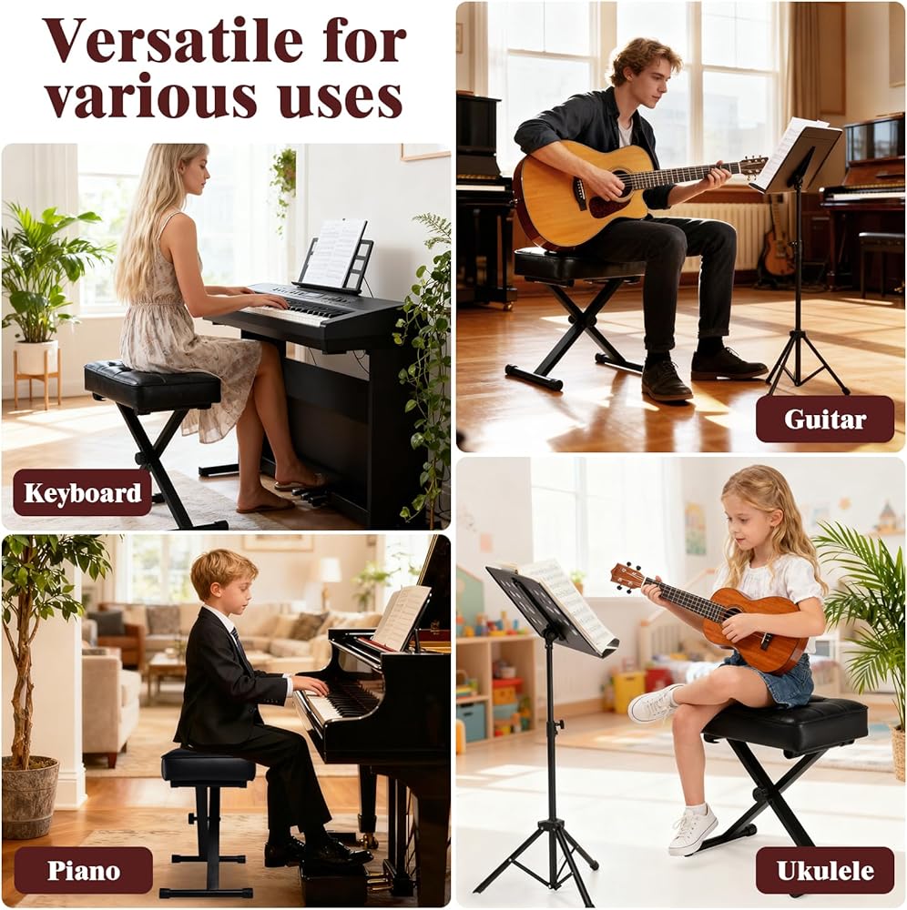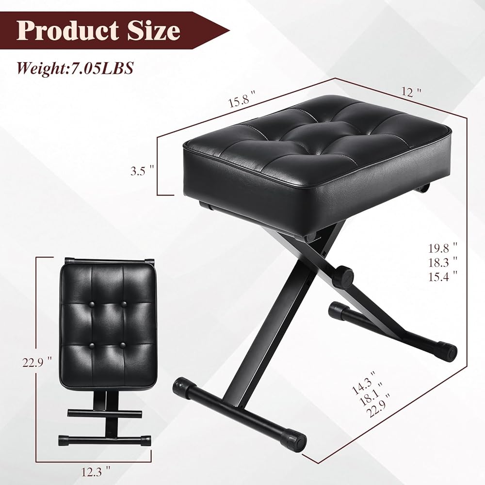 • 【𝑭𝒐𝒍𝒅𝒂𝒃𝒍𝒆 & 𝑷𝒐𝒓𝒕𝒂𝒃𝒍𝒆】: تم تصميم إطار X المصمم بأناقة لسهولة الحمل القصوى. يمكن طي مقعد لوحة المفاتيح هذا بسرعة في ثوانٍ إلى حجم صغير يبلغ 23 بوصة × 12 بوصة × 6 بوصة، مما يجعل من السهل تخزينه تحت السرير أو في الخزانة أو أي مساحة ضيقة. يضمن هذا التصميم المدروس توفير المساحة في المنزل أو أثناء التنقل للحصول على الدروس أو العروض.