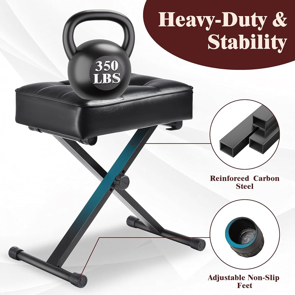 • 【𝑯𝒆𝒂𝒗𝒚-𝑫𝒖𝒕𝒚 𝑺𝒖𝒑𝒑𝒐𝒓𝒕 & 𝑺𝒕𝒂𝒃𝒊𝒍𝒊𝒕𝒚】: يتميز مقعد لوحة المفاتيح بقاعدة على شكل X مصممة من أنابيب فولاذية سميكة بمقطع عرضي 0.79 × 1.57 بوصة، قادرة على 𝐬𝐮𝐩𝐩𝐨𝐫𝐭𝐢𝐧𝐠 𝟑𝟓𝟎 𝐥𝐛𝐬 . عندما تكون على أرضية غير مستوية، قم ببساطة بتدوير الأقدام المطاطية الأربعة غير القابلة للانزلاق في القاعدة لتسوية المقعد بسهولة، مما يضمن التوازن المثالي والثبات لأدائك.