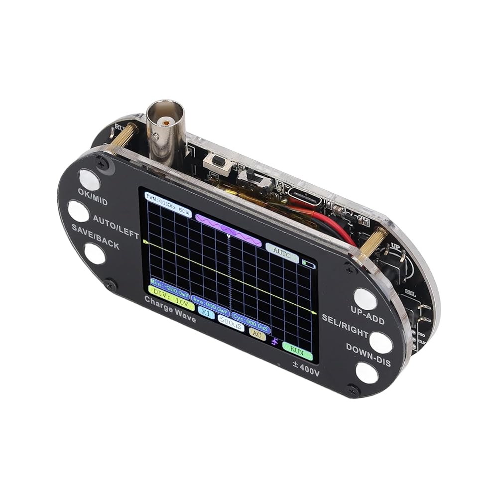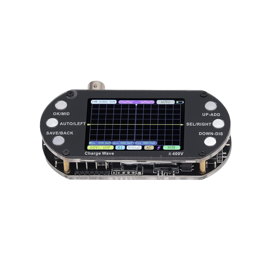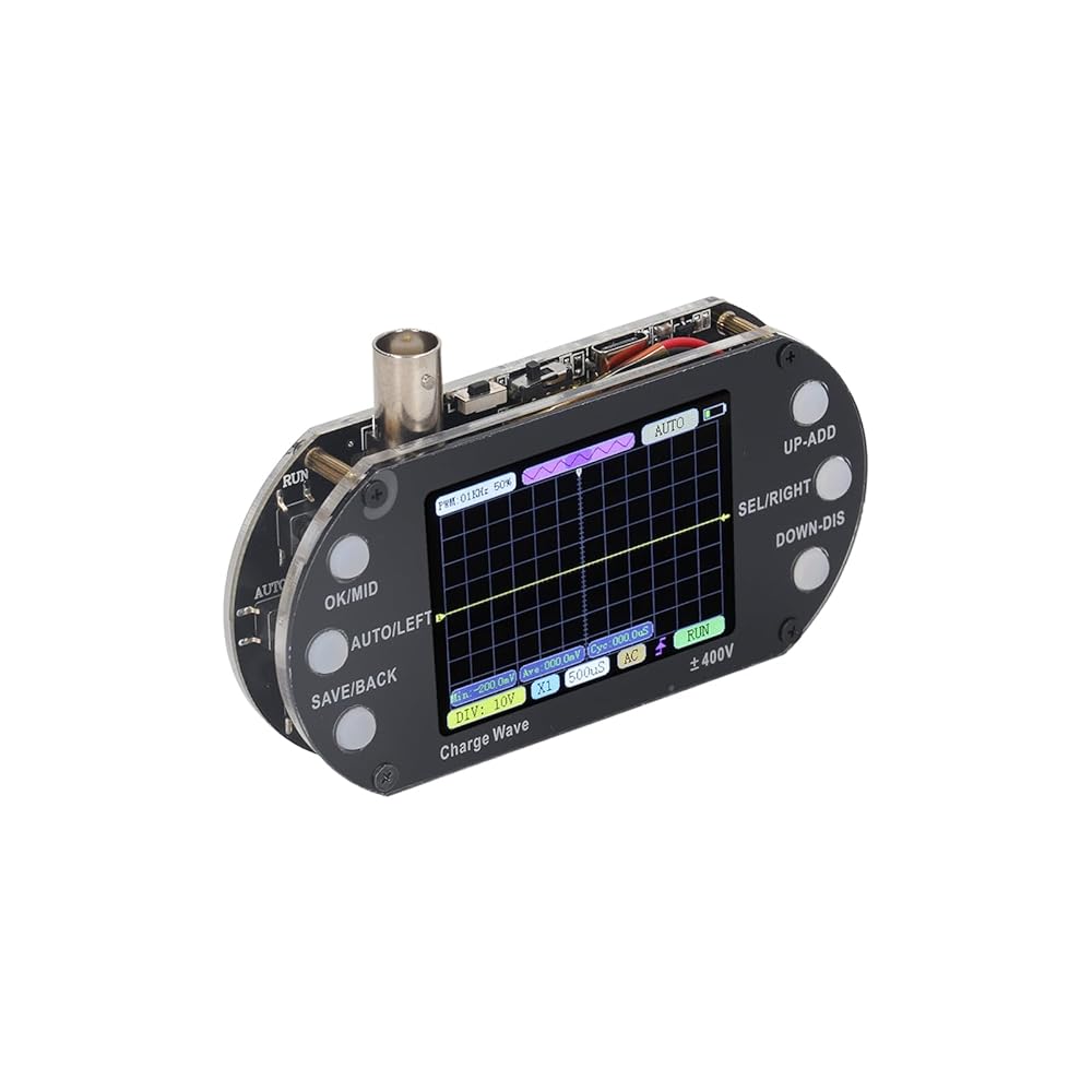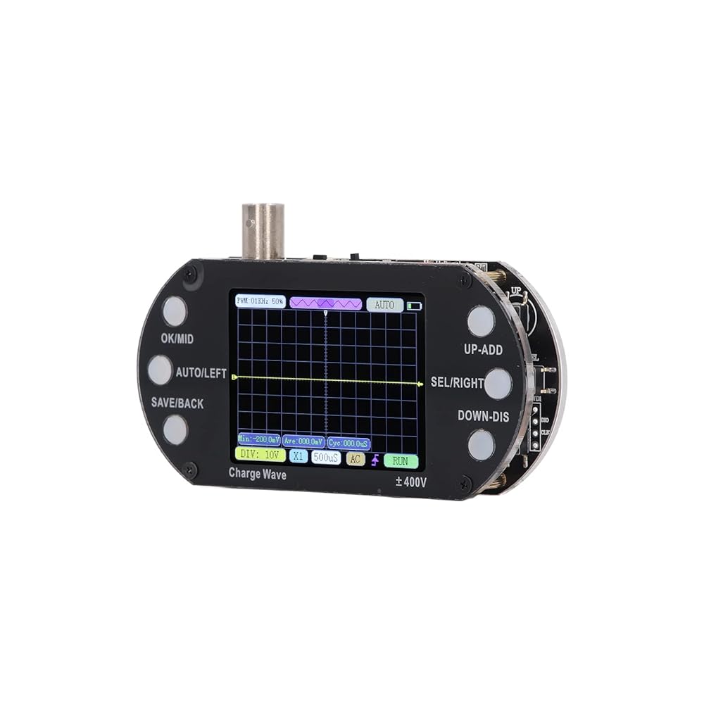 • TFT Display: The portable oscilloscope is equipped with a 2.4 inch TFT display with 320x240 resolution, so you can clearly see the measurement data displayed on the screen.