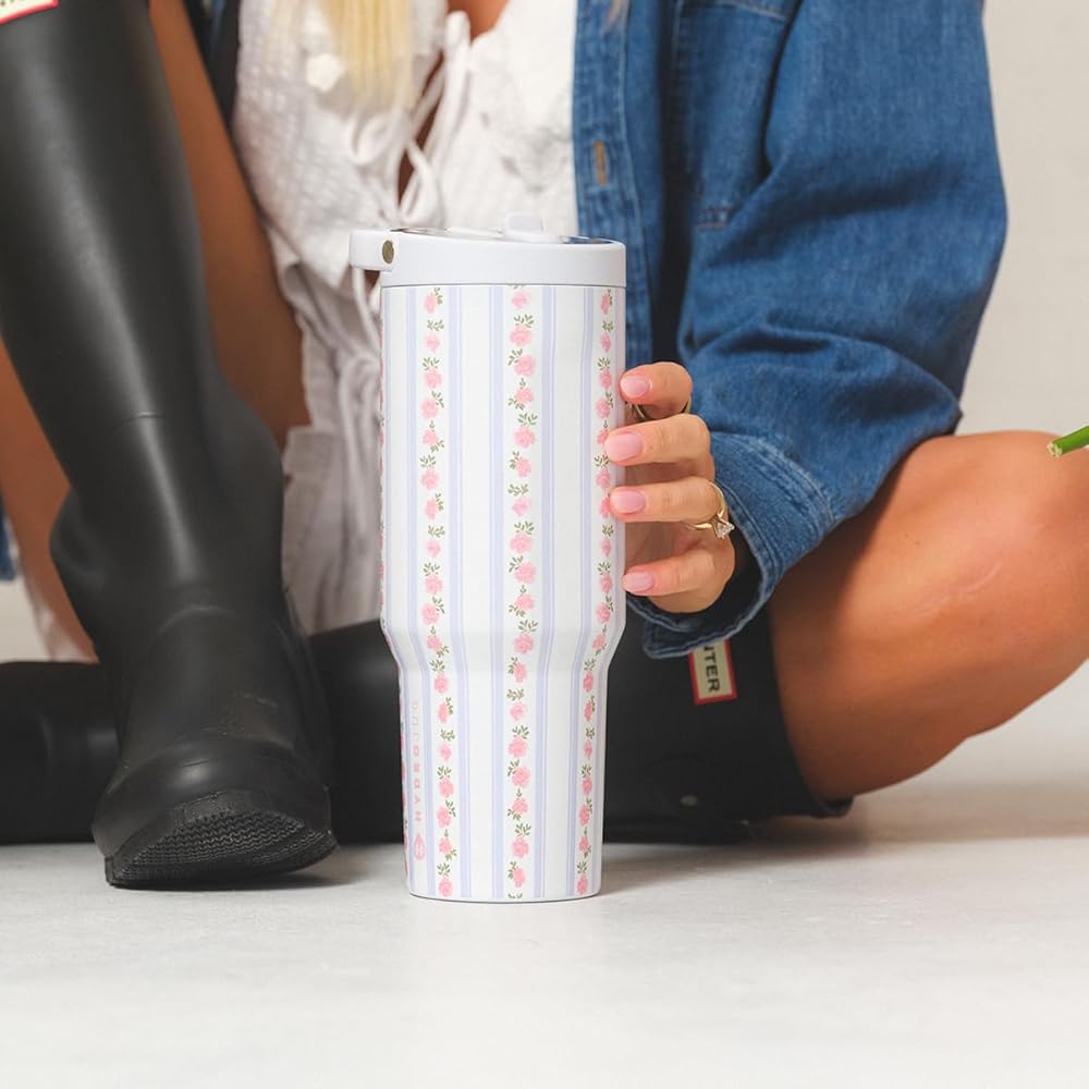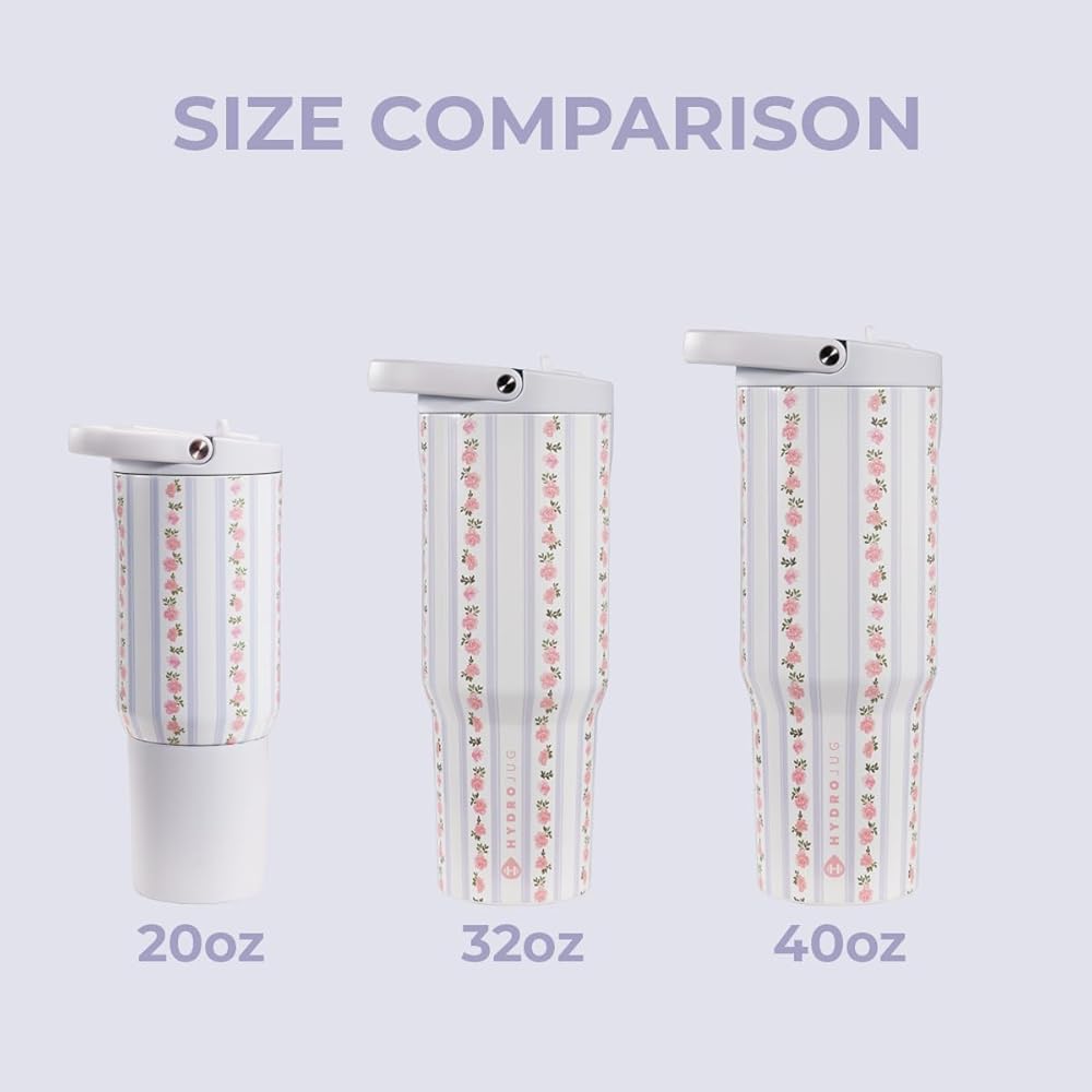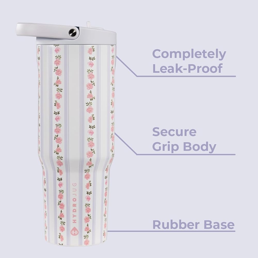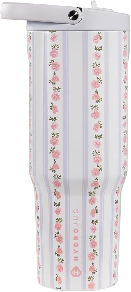 HydroJug Sport - كوب من الفولاذ المقاوم للصدأ مزود بماصة، معزول بالفراغ، زجاجة مياه مقاومة للتسرب سعة 32 أونصة، تصميم مريح، قابل لإعادة الاستخدام، آمن للاستخدام في غسالة الأطباق، قاعدة مطاطية، متين للصالة الرياضية أو في الهواء الطلق، زهرة الربيع