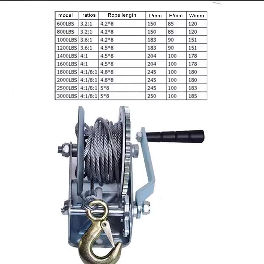 ونش القارب عالي التحمل من الفولاذ 3000 رطل، ونش يدوي مع خطاف، ونش كرنك بسقاطة في اتجاهين لسيارات الدفع الرباعي، ATV، ونش يدوي مع حبل سلكي بطول 26 قدم