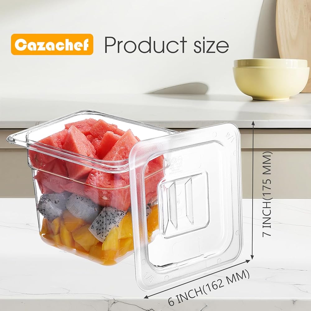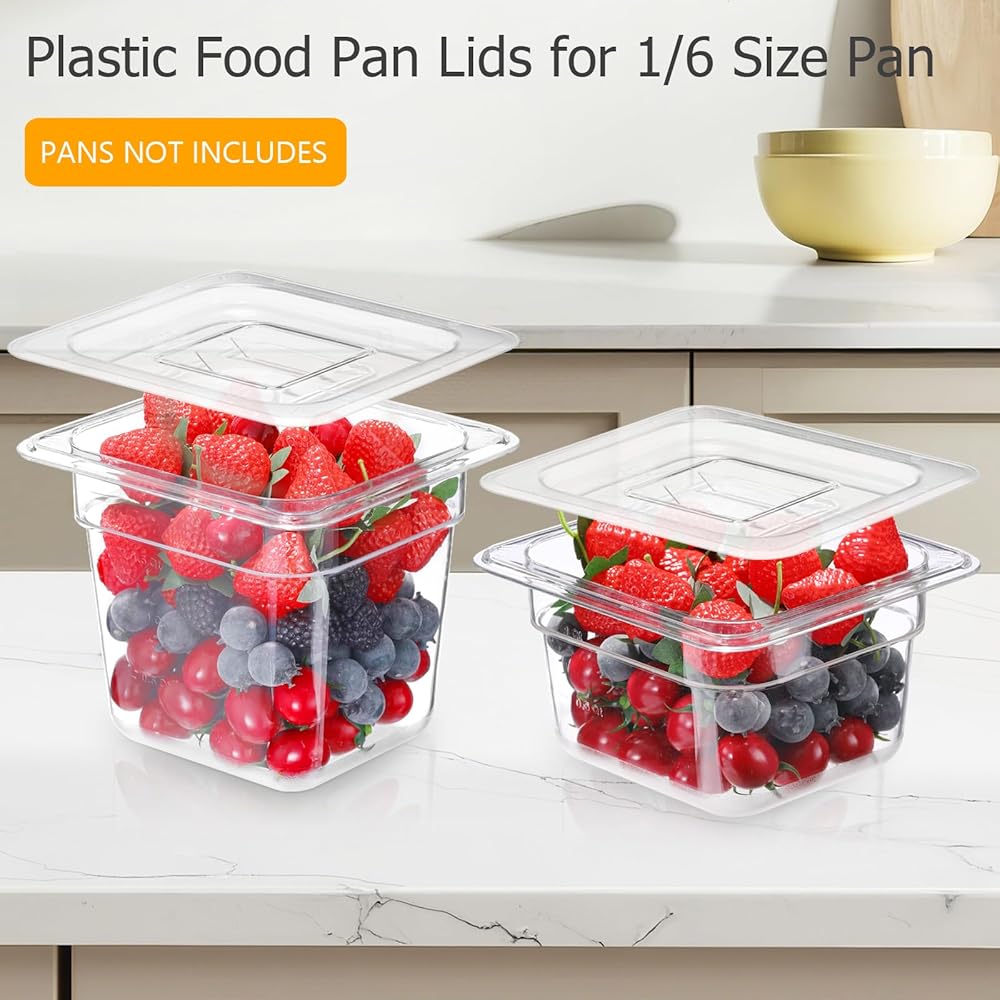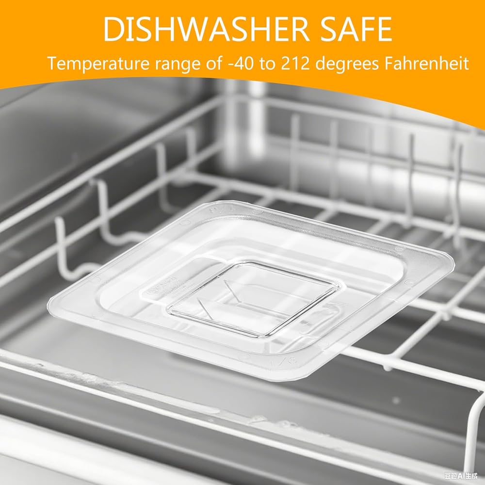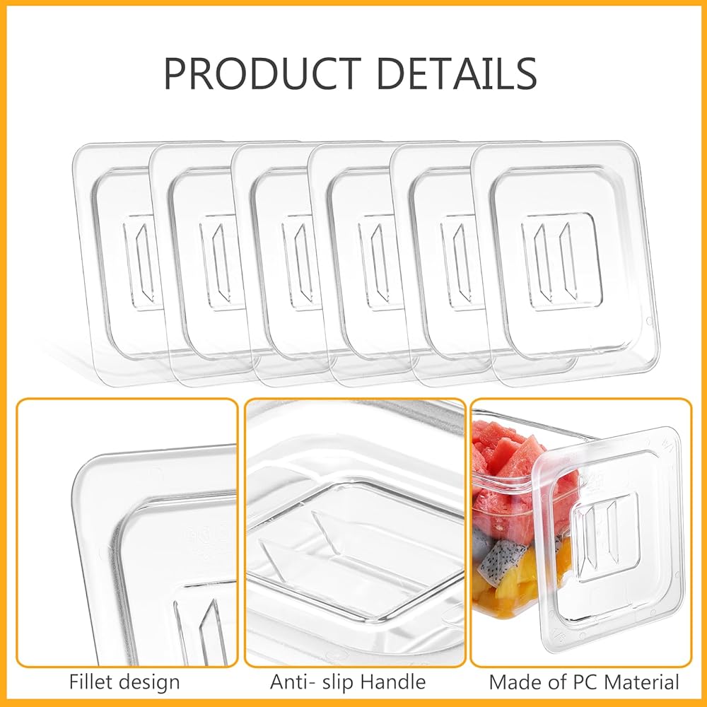 قائمة العبوة: تأتي هذه العبوة القيمة مع 6 أغطية مقلاة من البولي كربونات عالية الجودة، بقياس تقريبًا: 7 × 6.5 بوصة، متوافقة بنسبة 100% مع مقالي الطعام CAZACHEF 1/6. يمكن لأغطية المقلاة هذه أن تتحمل درجات الحرارة من -40 درجة فهرنهايت إلى 212 درجة فهرنهايت وهي آمنة للاستخدام في غسالة الأطباق التجارية دون ذوبان أو تزييف.