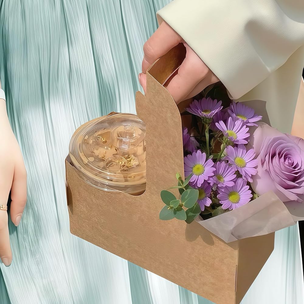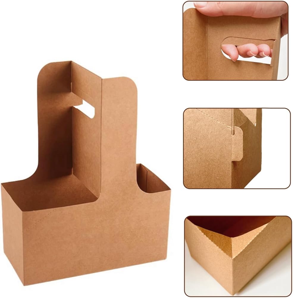 Make beverage delivery and takeout easier with this practical 2-cup kraft paper drink carrier. The sturdy construction features dedicated spaces to securely hold two cups, while the convenient handle allows for comfortable, stable transport. Perfect for coffee shops, restaurants, food trucks, and catering services, these carriers help prevent spills and make it simple to carry multiple drinks at once. The classic kraft paper design maintains a professional appearance suitable for any business setting. The pack includes 20 carriers, making it an excellent choice for establishments serving beverages to go. These holders accommodate standard-sized coffee cups and similar beverage containers, helping your staff deliver drinks efficiently while providing customers with a reliable way to transport their beverages. The disposable design eliminates the need for return trips or cleaning, streamlining your takeout operations.