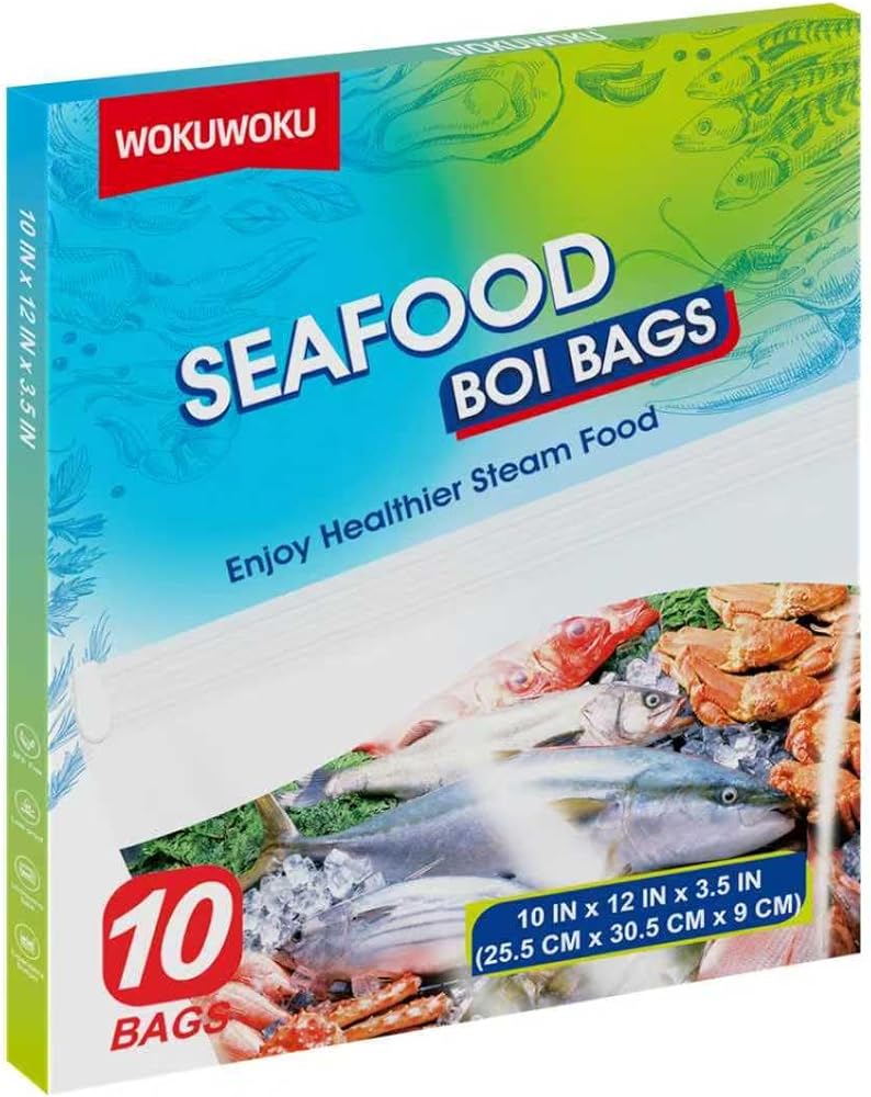 أكياس غليان المأكولات البحرية حقيبة غليان صغيرة الحجم لطهي المأكولات البحرية والأسماك وسرطان البحر والروبيان والخضروات - أكياس الطبخ والتخزين (10، صغيرة)