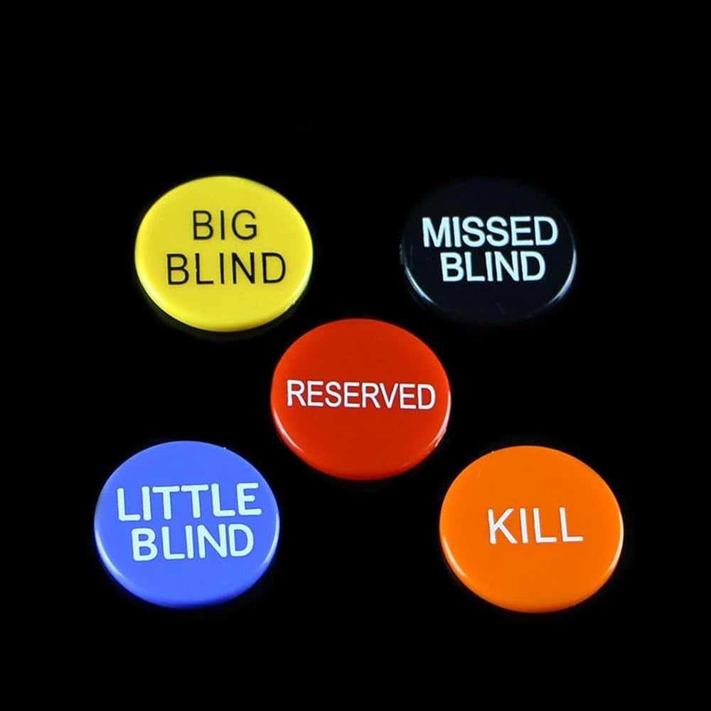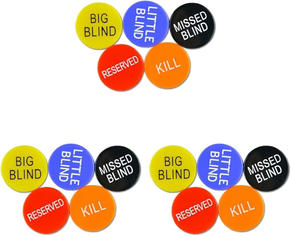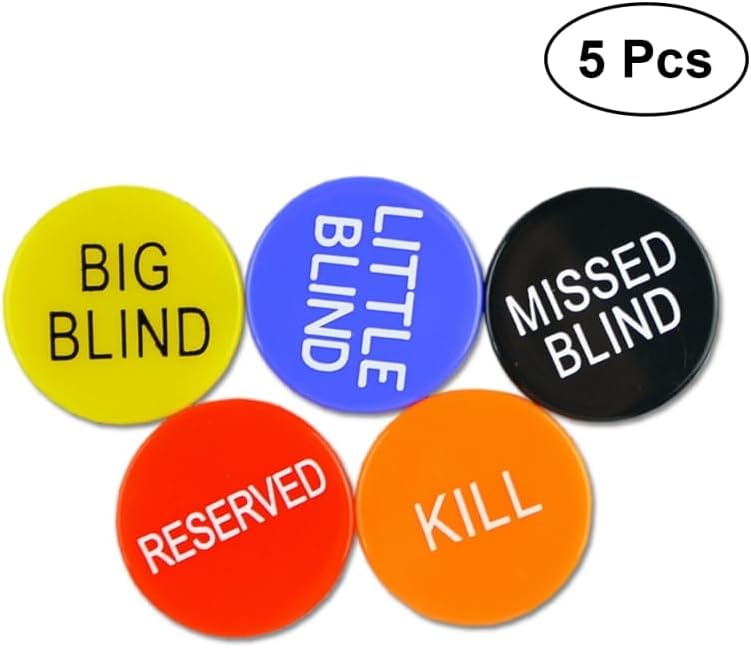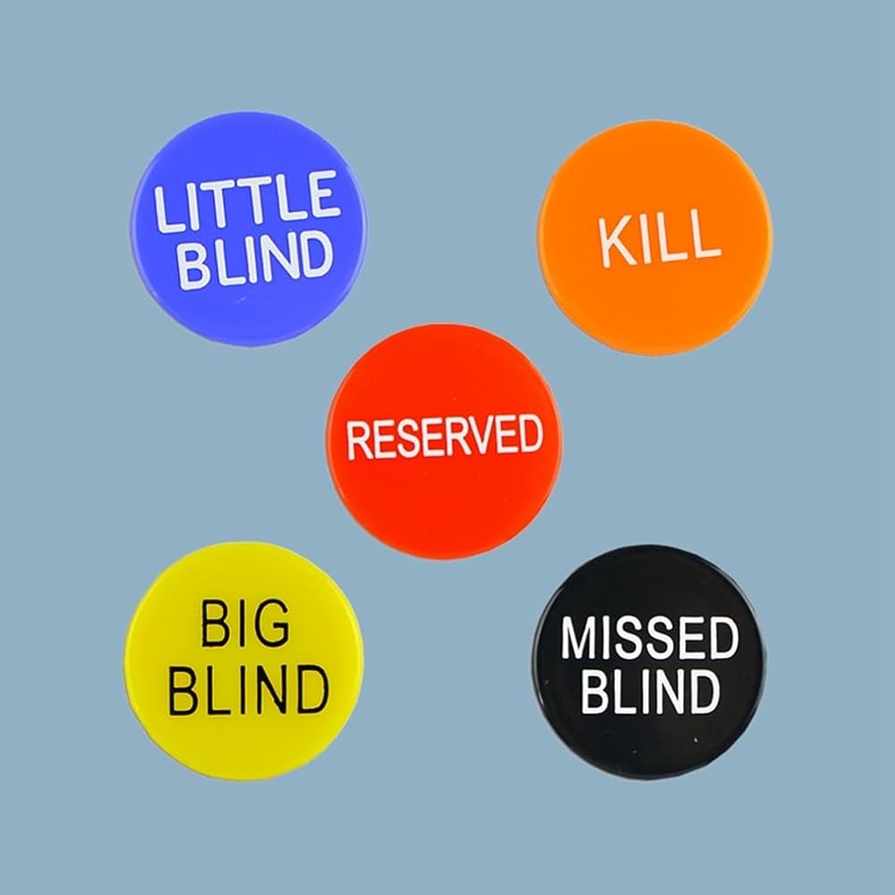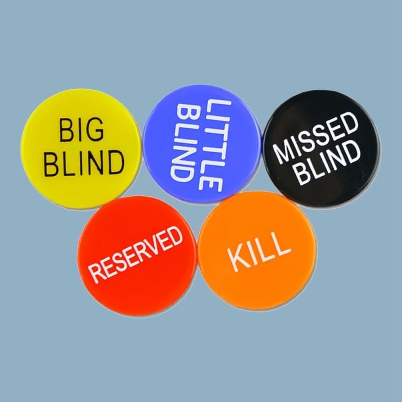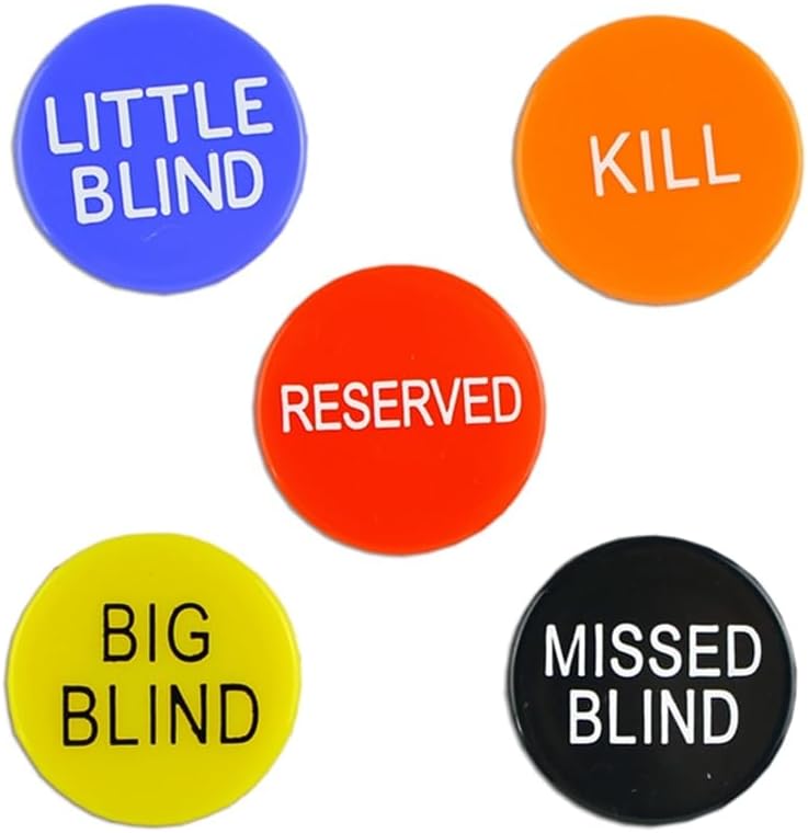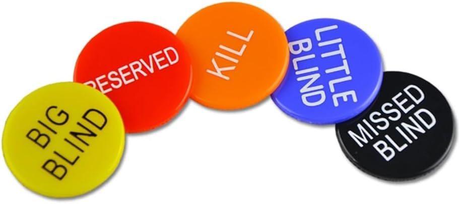 • Complete Poker Button Set: Includes 5 essential poker buttonsBig Bling, Little Blind, Missed Blind, Kill, and Reserveddesigned to enhance gameplay and organization during poker and tournaments