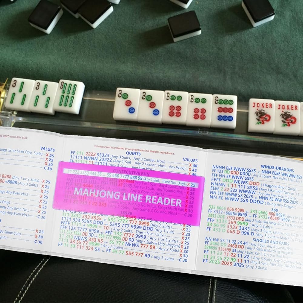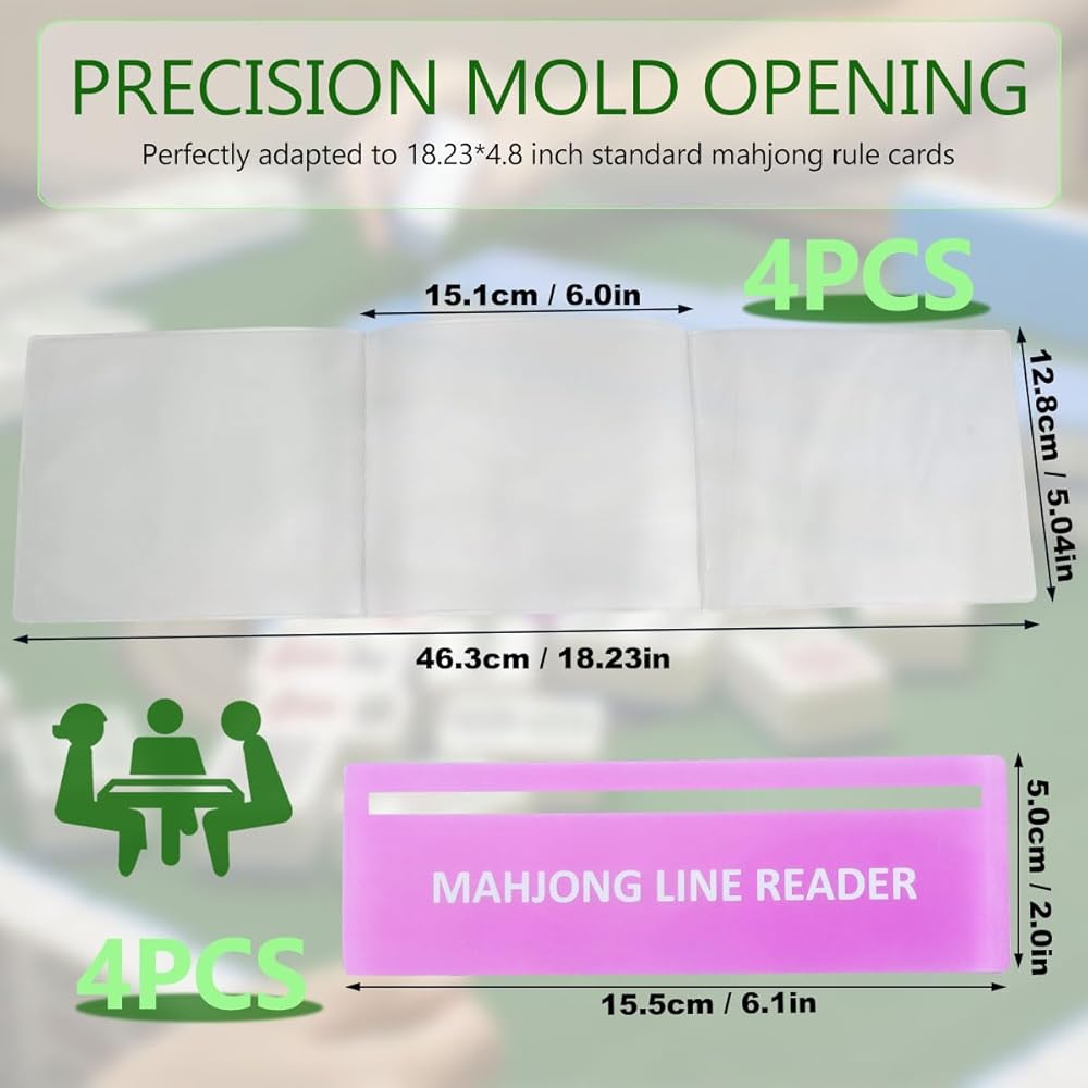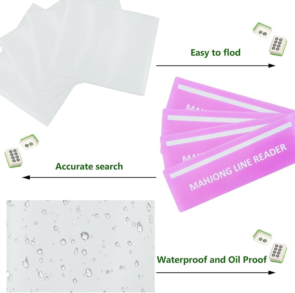 • 【Packing Included】4 matte PVC protective sleeves, plus 4 color-coded line readers included, helping players quickly track tiles and read lines (mahjong tiles not included)