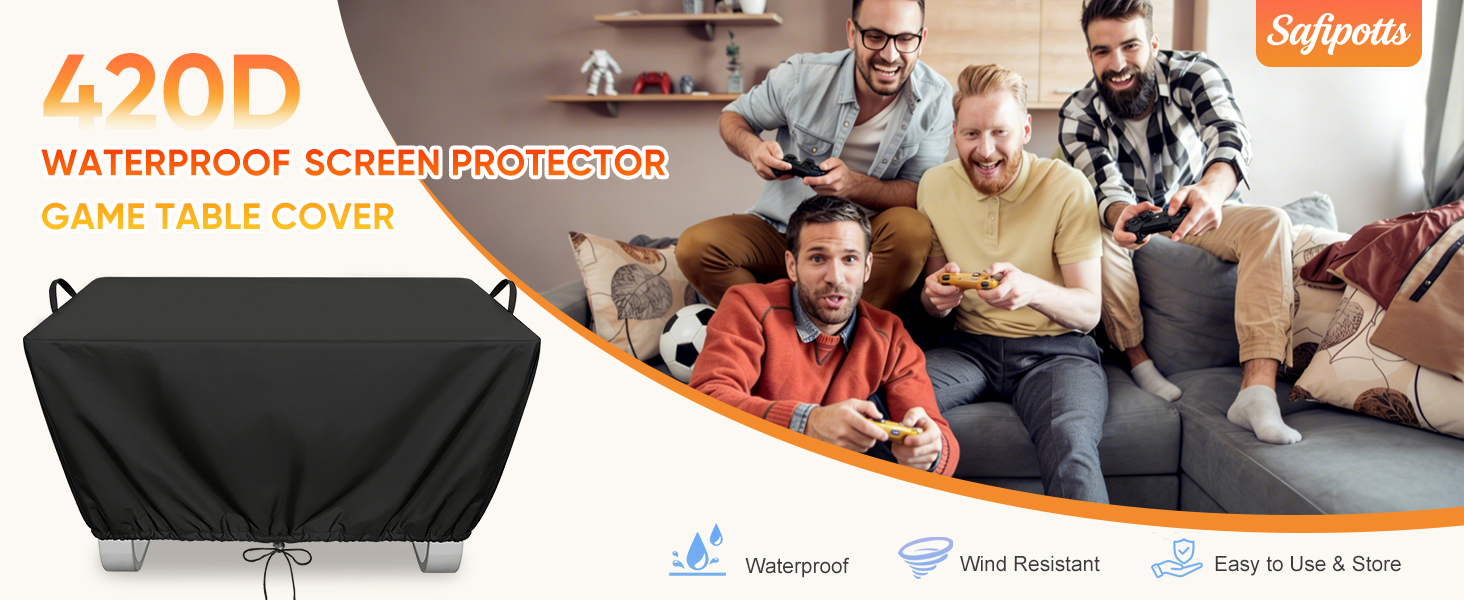 مقاومة للماء: يعتمد تصميم نسيج ألياف البوليستر عالي التحمل 420D لحماية شاشة طاولة الألعاب الخاصة بك. بالإضافة إلى ذلك، يمكن أن يكون مقاومًا للماء والغبار ويمنع القطط المؤذية في المنزل.