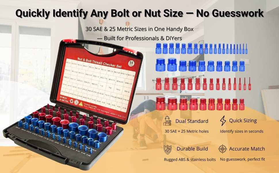 【مجموعة معرف الصواميل والمسامير الرئيسية المكونة من 55 قطعة】 تحديد أدوات التثبيت بدقة احترافية. تشتمل هذه المجموعة الرئيسية الشاملة على 30 مقاسًا SAE (قياسي) و25 مقاسًا متريًا، تغطي درجات الخيوط الأكثر شيوعًا والتي يصعب العثور عليها. إنها أداة أساسية للميكانيكيين وعشاق الأعمال اليدوية لضمان فحص الخيوط بسلاسة في أي ورشة عمل أو مرآب