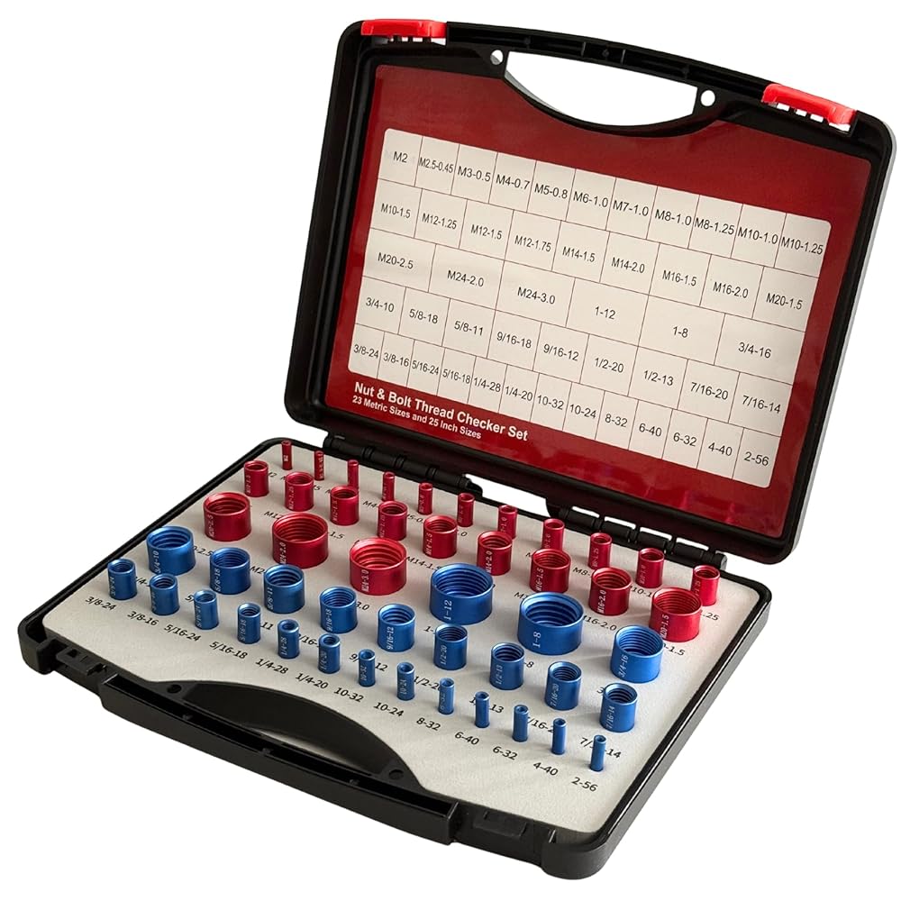 30 مقاسًا قياسيًا (SAE) باللون الأزرق: 2-56 UNC، 4-40 UNC، 6-32 UNC، 6-40 UNC، 8-32 UNC، 10-24 UNC، 10-32 UNC، 12-24 UNC، 1/4-20 UNC، 1/4-28 UNC، 5/16-18 UNC، 5/16-24 مؤسسة الأمم المتحدة، 3/8-16 مؤسسة الأمم المتحدة، 3/8-24 مؤسسة الأمم المتحدة، 7/16-14 مؤسسة الأمم المتحدة، 7/16-20 مؤسسة الأمم المتحدة، 7/16-24 مؤسسة الأمم المتحدة، 1/2-13 مؤسسة الأمم المتحدة، 1/2-20 مؤسسة الأمم المتحدة، 9/16-12 مؤسسة الأمم المتحدة، 9/16-18 مؤسسة الأمم المتحدة، 9/16-20 مؤسسة الأمم المتحدة، 5/8-11 الأمم المتحدة، 5/8-18 الأمم المتحدة، 3/4-10 الأمم المتحدة، 3/4-16 الأمم المتحدة، 7/8-9 الأمم المتحدة، 7/8-14 الأمم المتحدة، 1-8 الأمم المتحدة، 1-12 الأمم المتحدة.