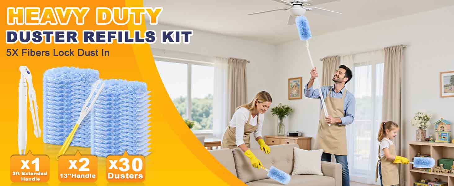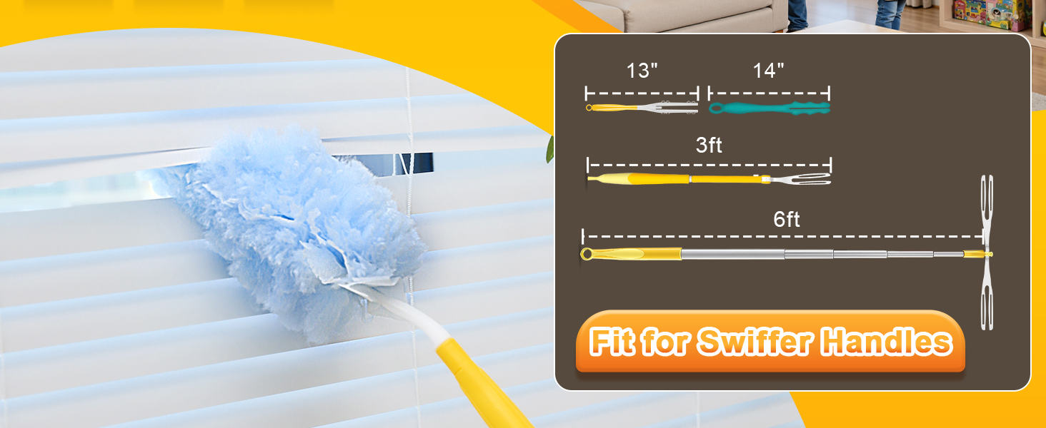 • [منفضة منظف مروحة السقف] 30 منفضة غبار مع عمود تمديد بطول 3 أقدام، ومقبض قصير، هذه المجموعة تجعل التنظيف سهلاً. استخدم المقبض القصير للأسطح المنخفضة؛ قم بتمديد العمود لتنظيف الأماكن المرتفعة مثل الأسقف والمراوح بسهولة