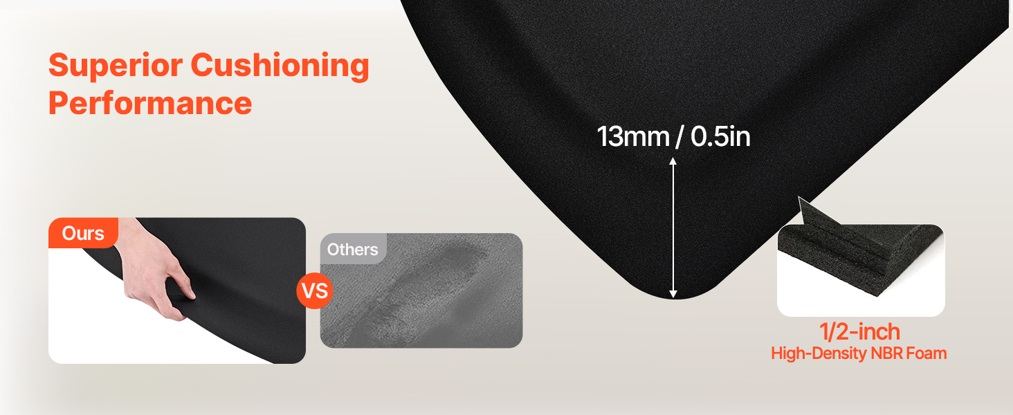 • Enhanced Comfort: Filled with 1/2-inch thick, high-density NBR foam, this anti-fatigue salon chair mat offers premium cushioning and shock absorption, reducing fatigue, pressure and strain on your feet, legs, knees and back from long hours of standing