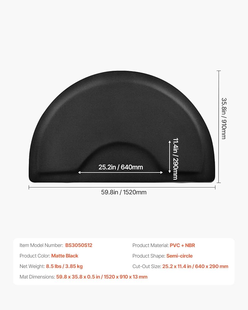 • Large Size: Our 3 x 5 FT semi-circle salon mat for hair stylists provides a spacious standing area, allowing barbers to move freely and work more efficiently. The 25.2" x 11.4" (640 x 290 mm) cut-out fits most salon chairs with a round base, staying securely in place without shifting