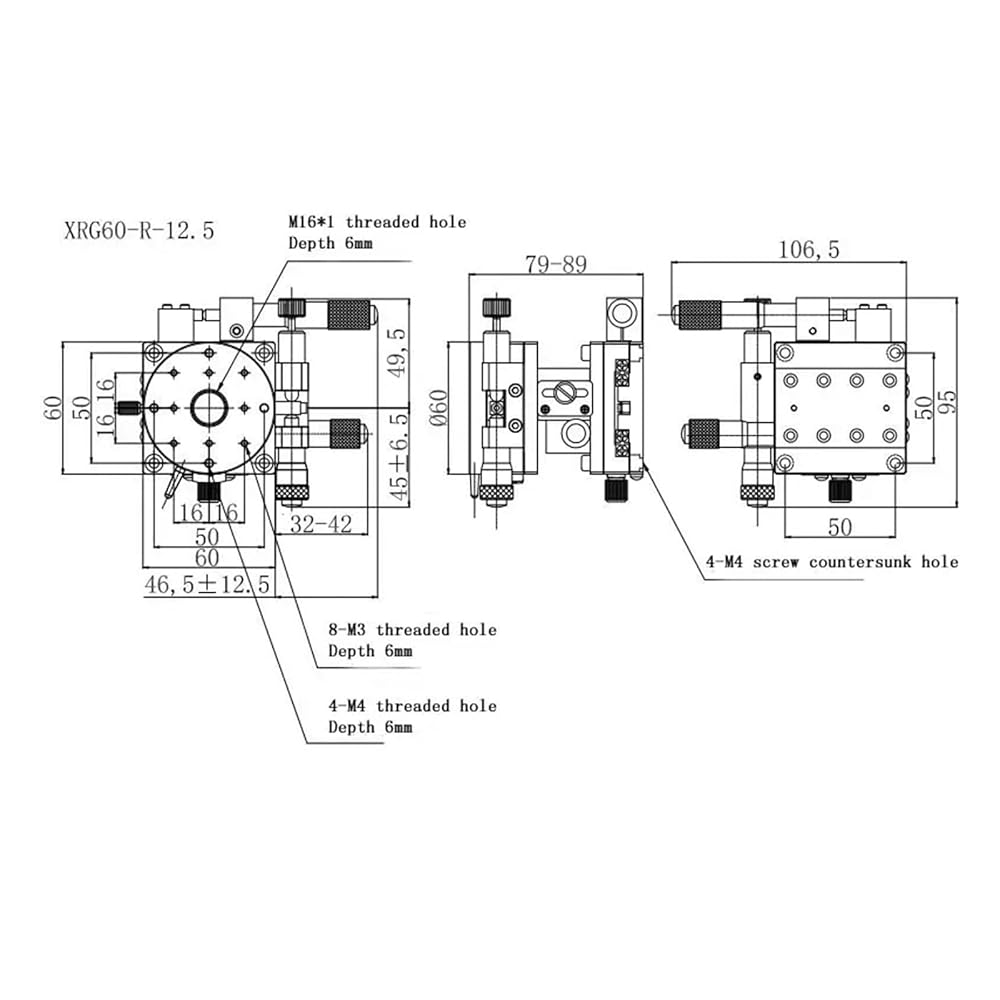 قم بزيادة شوط المنصة البصرية XZRG60-R لضبط الترجمة والرفع والدوران