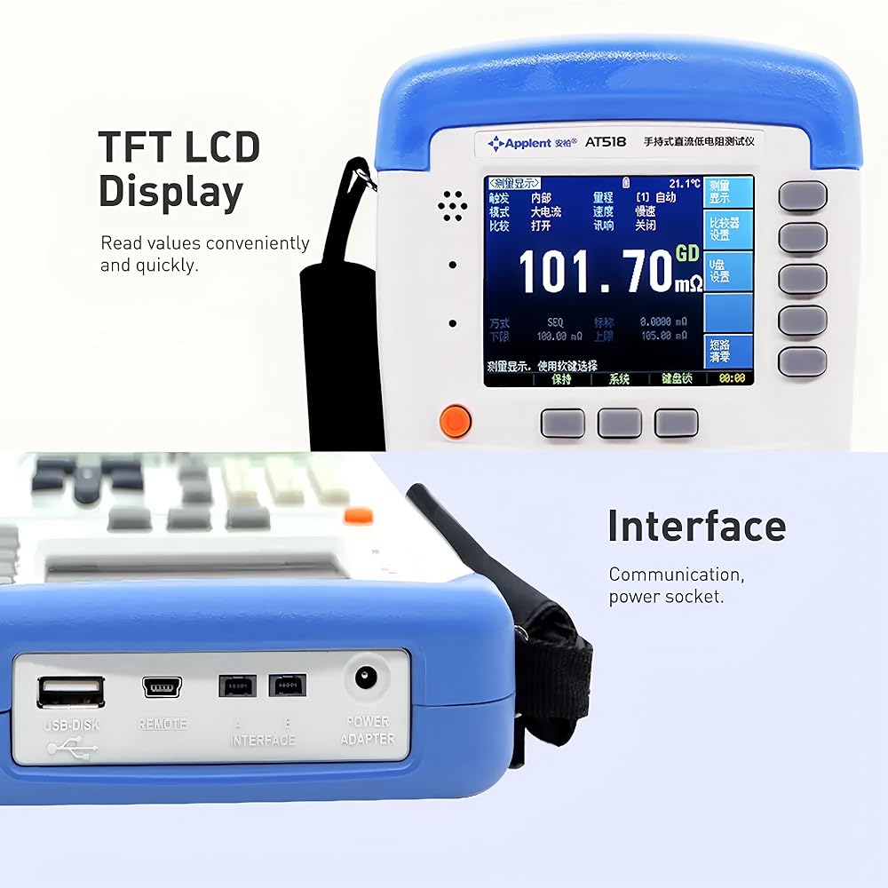 i-POOK - AT518 AT518L DC Milliohm Meter Handheld High Precision Milliohm Meter Ohmmeter 20000 Beads Integrated Mini-USB 3.5 Inch 16M Color TFT-LCD Low Resistance (AT518)
