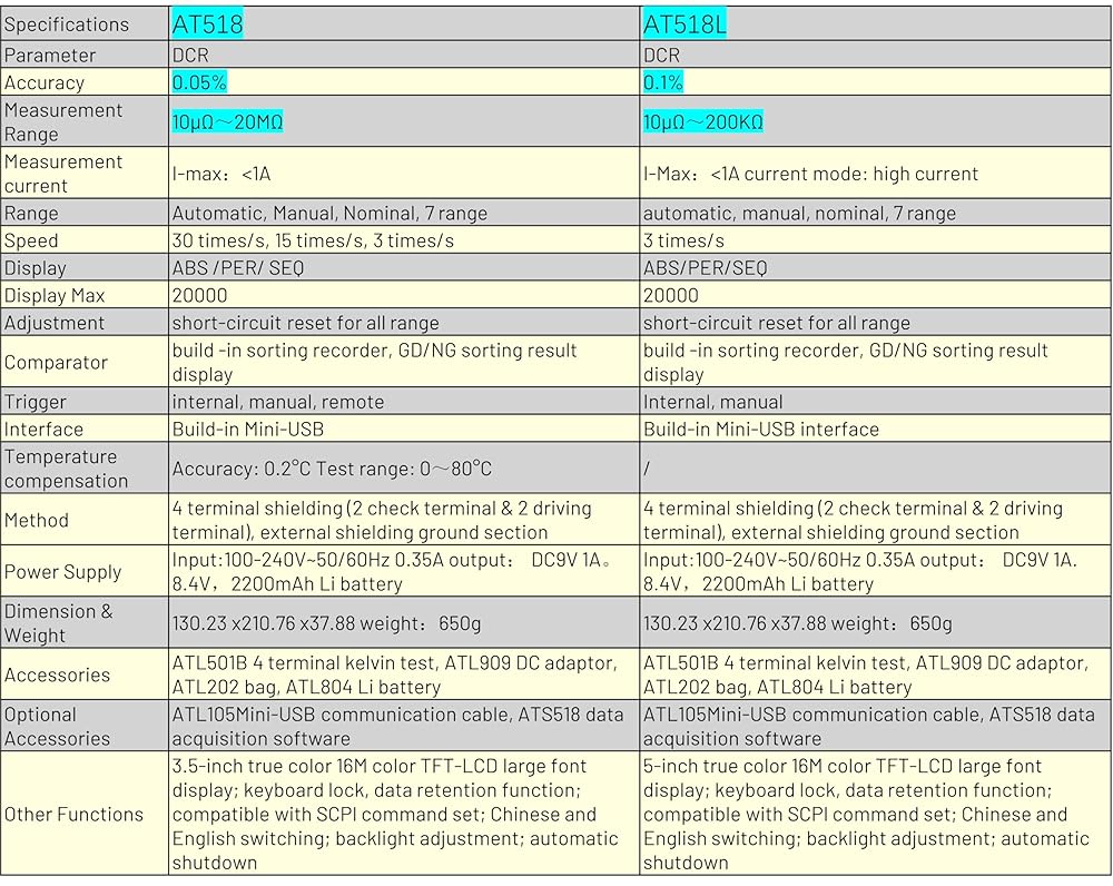 i-POOK - AT518 AT518L Micro Ohm Meter DC Milliohm Meter Handheld High Precision Milliohm Meter Ohmmeter 20000 Beads Integrated Mini-USB 3.5 Inch 16M Color TFT-LCD Low Resistance (AT518L)