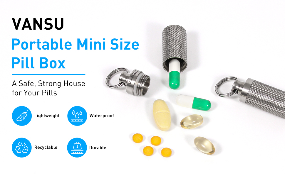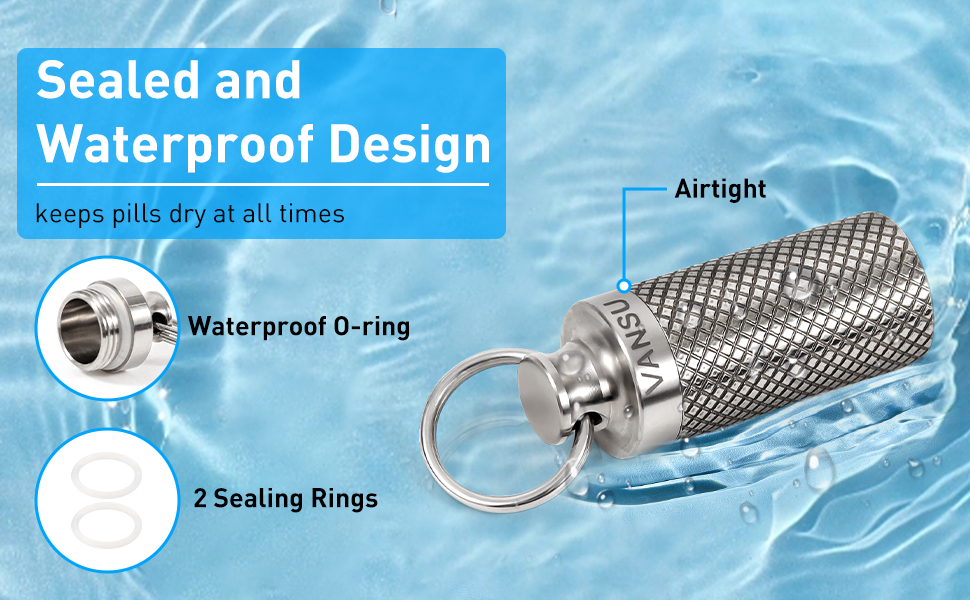 حاوية حامل حبوب منع الحمل على شكل سلسلة مفاتيح مقاومة للماء من التيتانيوم، علبة صغيرة الحجم محمولة لحبوب الدواء للتخييم في السفر في الهواء الطلق in Kuwait