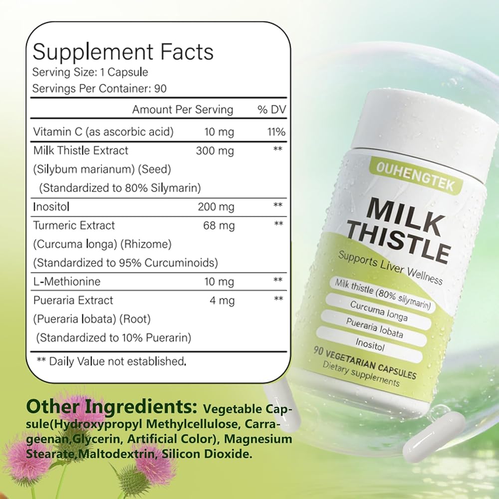 Key Ingredients & Specification;Each capsule contains 300mg of Milk Thistle extract, standardized to 80% Silymarin. Made with non-GMO, gluten-free, vegan-friendly ingredients.