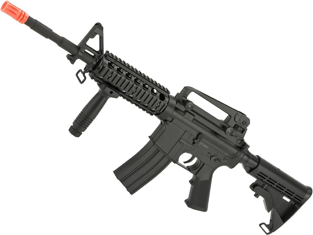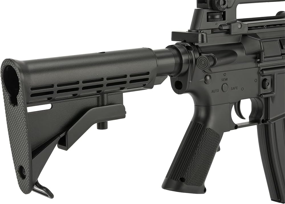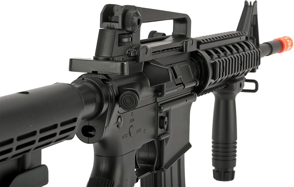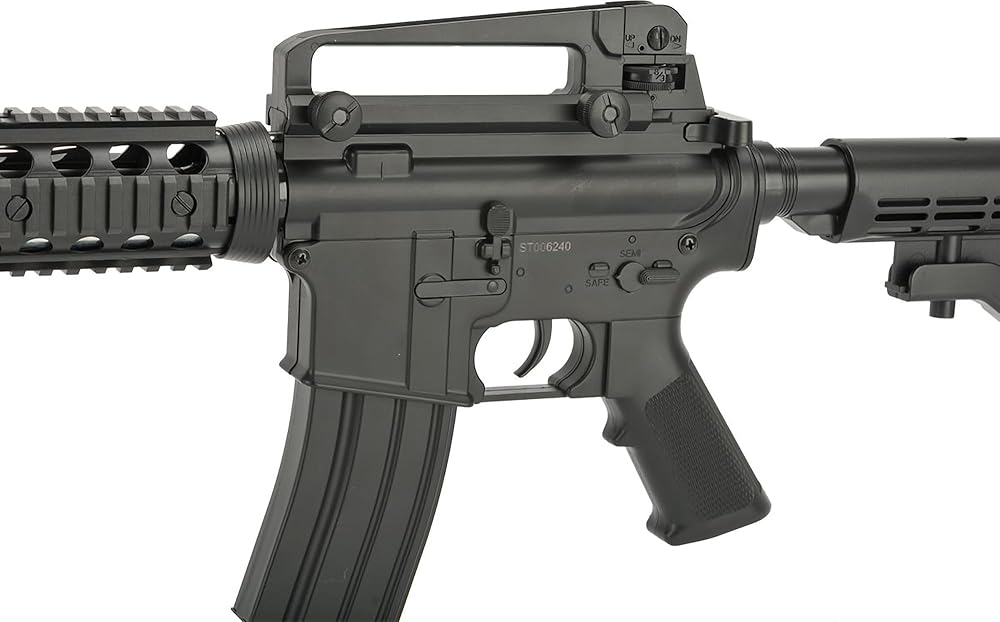 This is a full size M4-Style / M4 rifle that powers without the need of a battery or gas. Rifle comes with 9" furniture RIS, detachable top handle, and a drop-free 300 round Hi-Cap mag. Perfect for recreational backyard skirmishes and internal rifle only casual gaming!