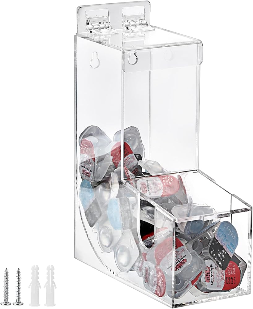 منظم تخزين العدسات اللاصقة اليومية من الأكريليك، صندوق تخزين معلق شفاف، موزع قائم بذاته مثبت على الحائط مع غطاء لعلب الغسيل، مجفف كرة الحلوى