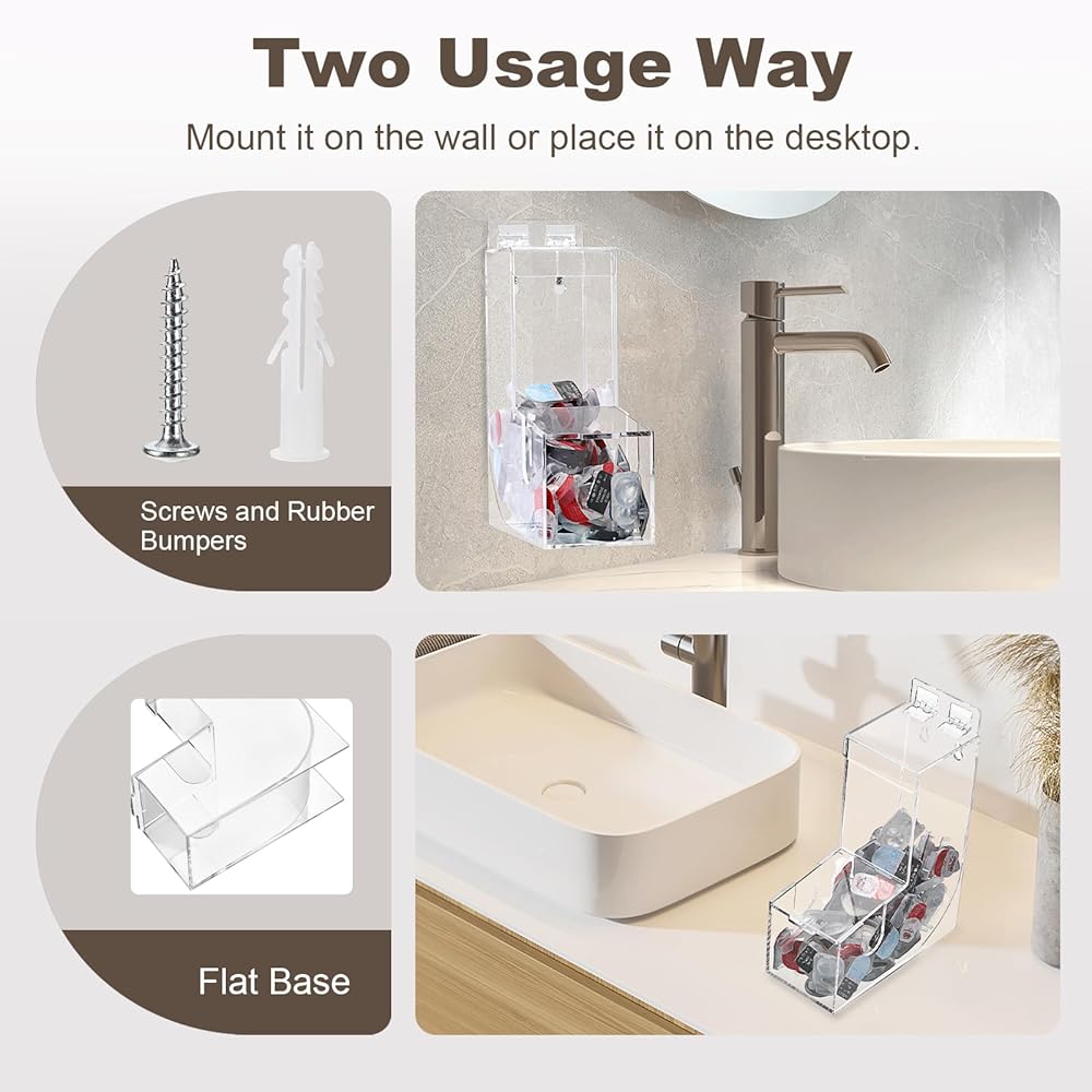 • Flexible Usage: This clear daily contact lens dispenser can be used on any tabletop, in closet or wall mounted. It supplied with two screws and two rubber bumpers for wall mounting, Alternatively, it can be placed directly on a table with a stable base. This is an ideal space saving storage solution, allowing you to make efficient use of your walls and vertical space