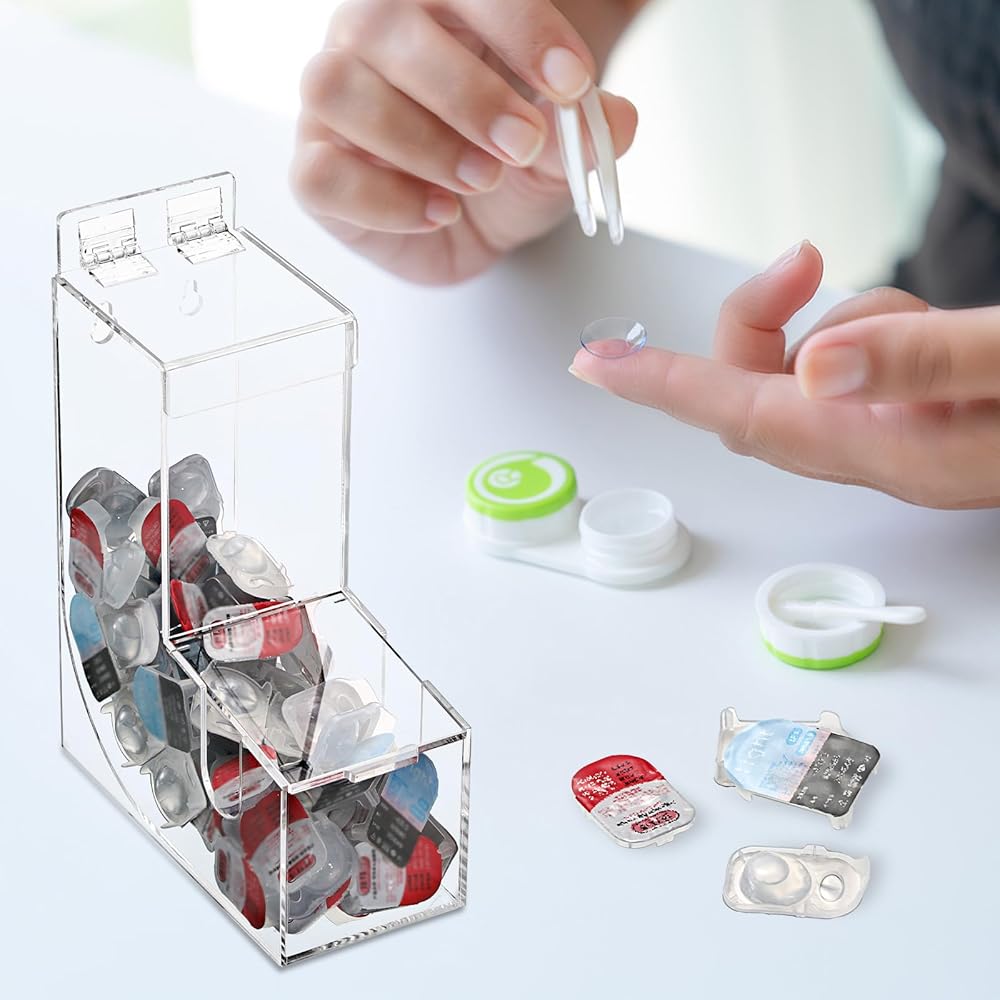 • Product Infos:Package included 1 pcs Acrylic Daily Contact Lens Dispenser (Other accessories are not included). It measures 7.1"L x 3.4"W x 9.7"H, space-saving holder for any home. Made from transparent acrylic, it allows for clear visibility of the contents inside, facilitating quick replenishment