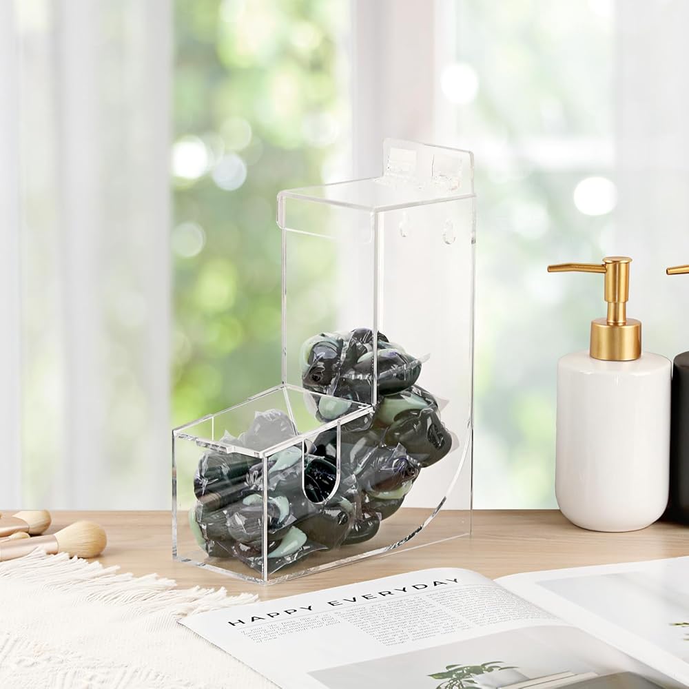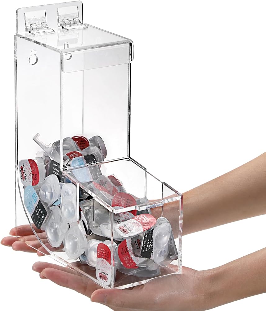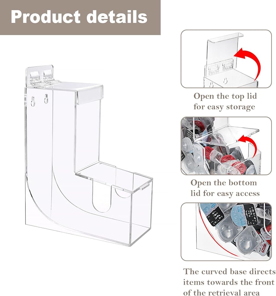 • Exceptional Construction: Unique design for convenient storage and effortless retrieval. This clear acrylic dispenser with a top lid to keep contents clean and dust-free, while opens for refilling items easily. The curved base guides contents towards the front of the retrieval area. Open the bottom lids to access contents hassle-free