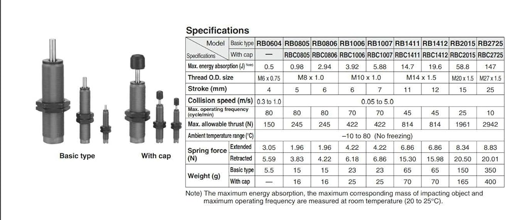 - Carus Tool SMC RB1412 Shock Absorber Basic type Stroke 12mm Thread O.D. size M14 x 1.5