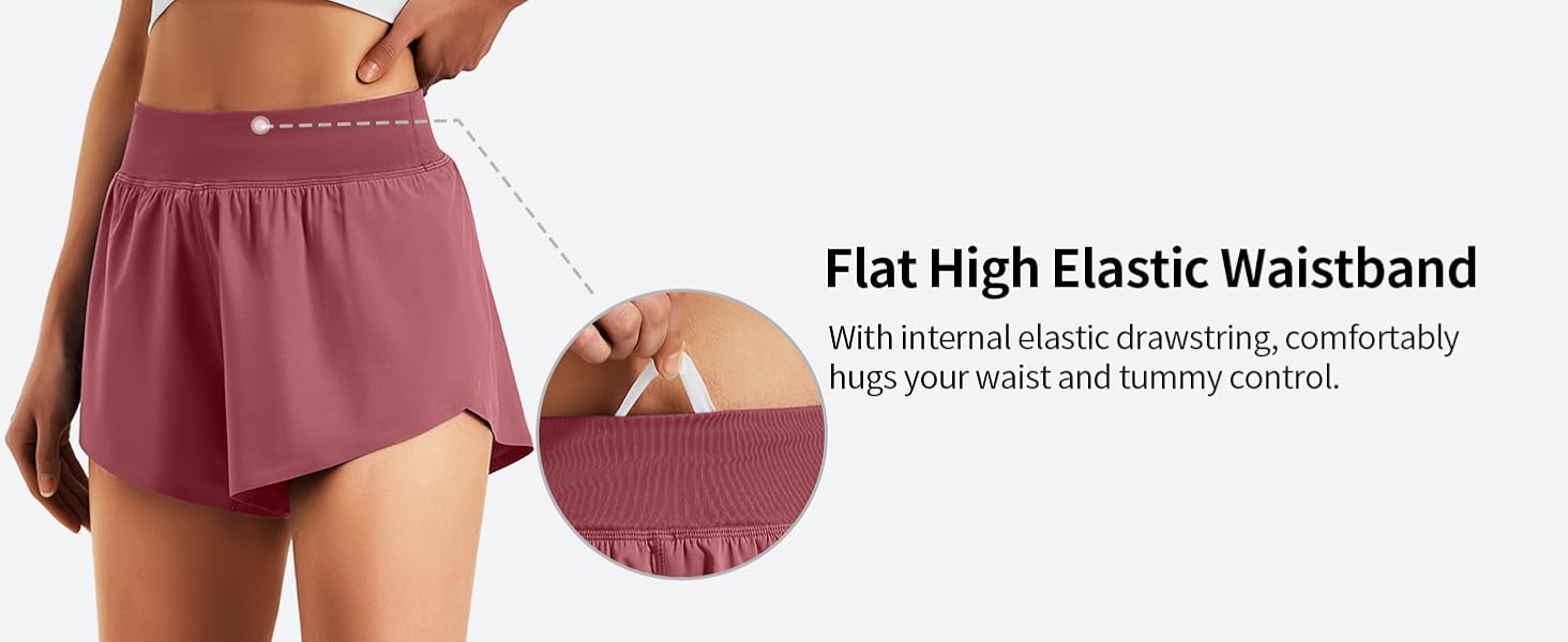 حزام خصر مطاطي مسطح: تتميز شورتات التمرين النسائية بحزام خصر مرن مسطح مع أربطة داخلية تجعلك تشعر بالراحة دون أي لفات أو حفر.