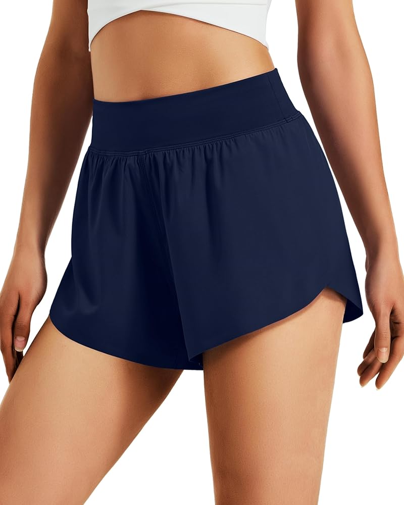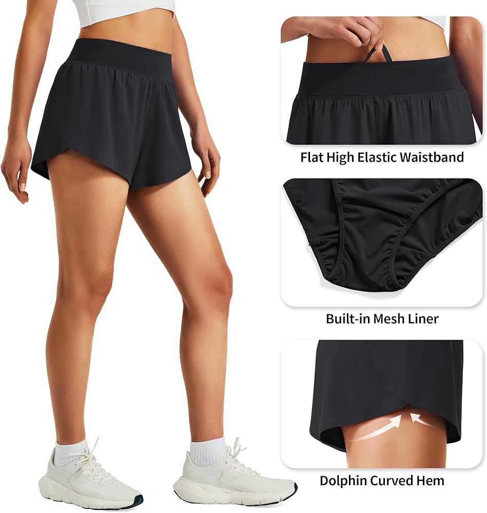 حاشية دولفين منحنية: تم تصميم شورت الجري للسيدات بحواشٍ جانبية عالية الانقسام، مما يساعد على تحقيق أقصى قدر من الحركة وتوفير نطاق غير مقيد من الحركة.
