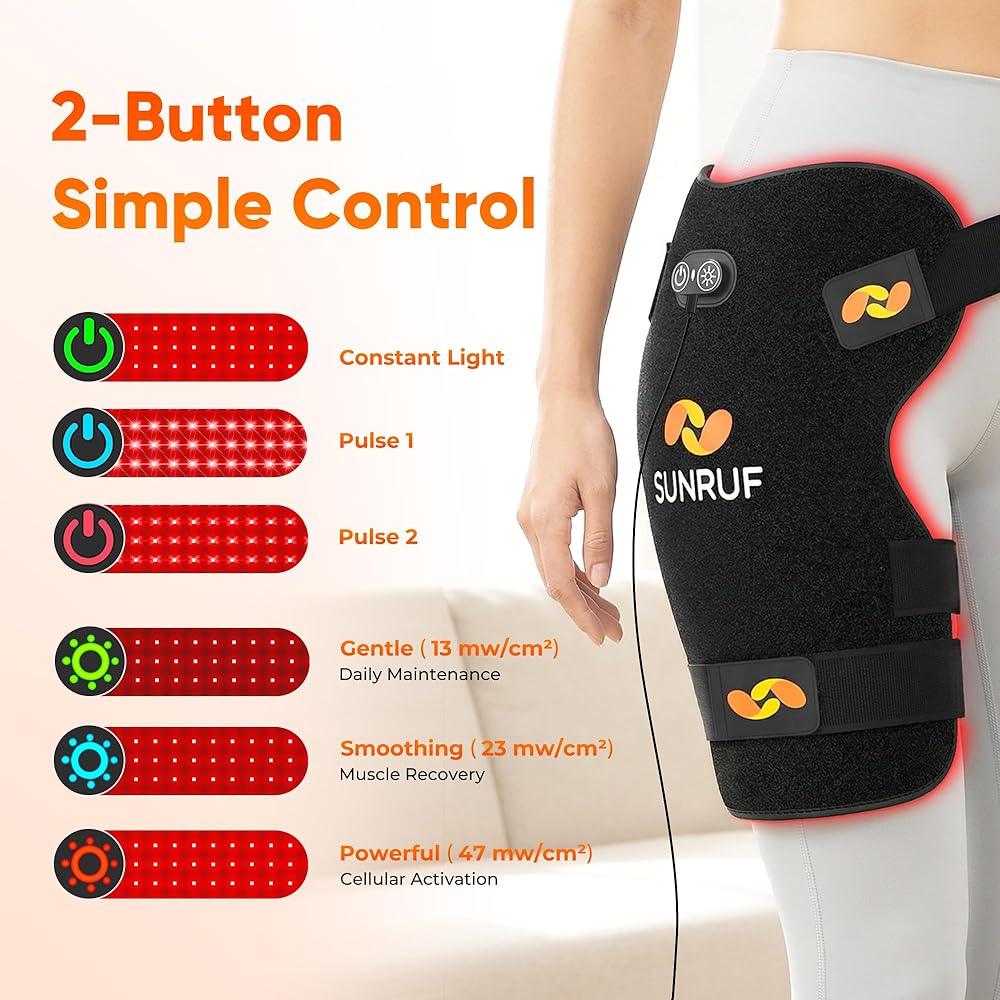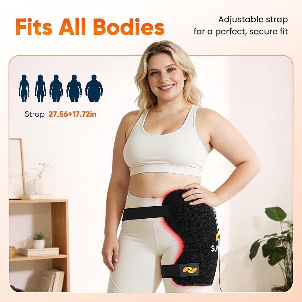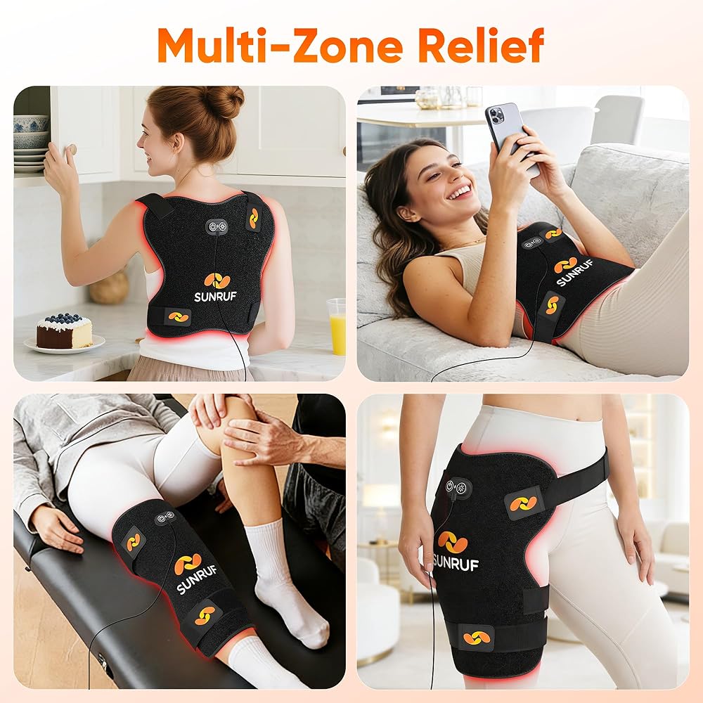 شريط مرن قابل للتعديل: أحزمة مرنة قابلة للتعديل تضمن ملاءمة آمنة بدون استخدام اليدين على أي شكل جسم. يمكن لفه بسهولة حول الكتفين أو الظهر أو الوركين أو الركبتين أو الخصر أو الساقين للحصول على علاج بالضوء الأحمر مريح ومستهدف أينما كنت في حاجة إليه.