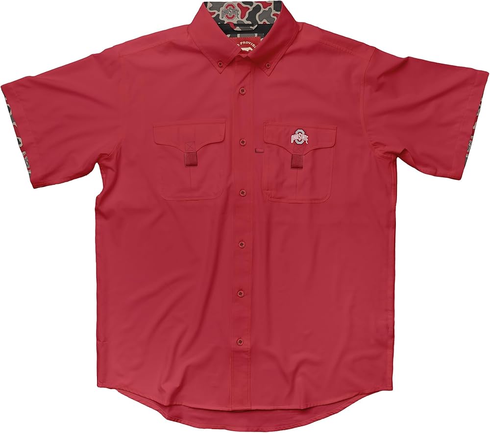 قميص رجالي من Amigo NCAA ولاية أوهايو بوكس ​​مرخص من El Campo بأكمام قصيرة وأزرار لأعلى في الملعب وقميص سمكة in Kuwait