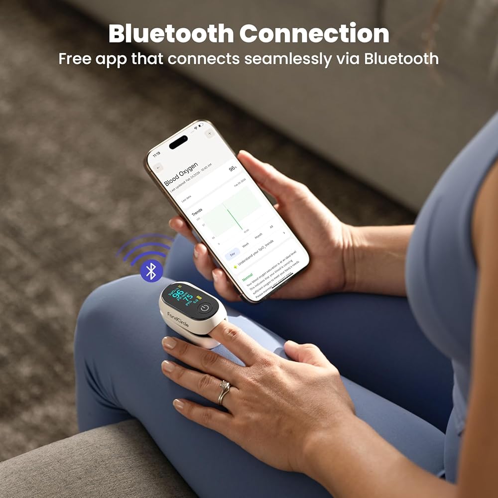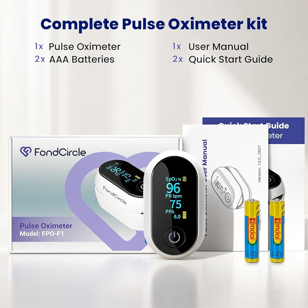 • دقة احترافية وتتبع شامل: يقيس SpO2 (مستويات الأكسجين في الدم) ومعدل النبض ومؤشر التروية (PI) بسرعة وبشكل موثوق في ثوانٍ. يتميز مقياس التأكسج النبضي FondCircle برسم بياني شريطي Pulse Waveform للتأكيد البصري في الوقت الفعلي لقوة الإشارة، مما يضمن دقة احترافية (±2%) لجميع احتياجاتك الرياضية واللياقة البدنية وتتبع العافية اليومية.