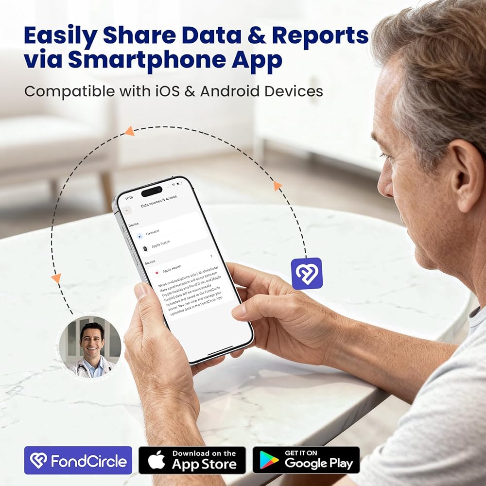 • تكامل تطبيق بلوتوث الذكي: مزامنة بيانات اللياقة البدنية الخاصة بك بسلاسة مع تطبيق FondCircle عبر البلوتوث (iOS 14.0+ / Android 8.0+). تخلص من الحاجة إلى التسجيل اليدوي — تتبع اتجاهاتك الصحية على المدى الطويل من خلال التخزين التلقائي للبيانات التاريخية. يمكنك بسهولة تصدير تقارير CSV لمشاركتها مع طبيبك أو مدرب اللياقة البدنية أو الاحتفاظ بها في سجلاتك الصحية الشخصية.