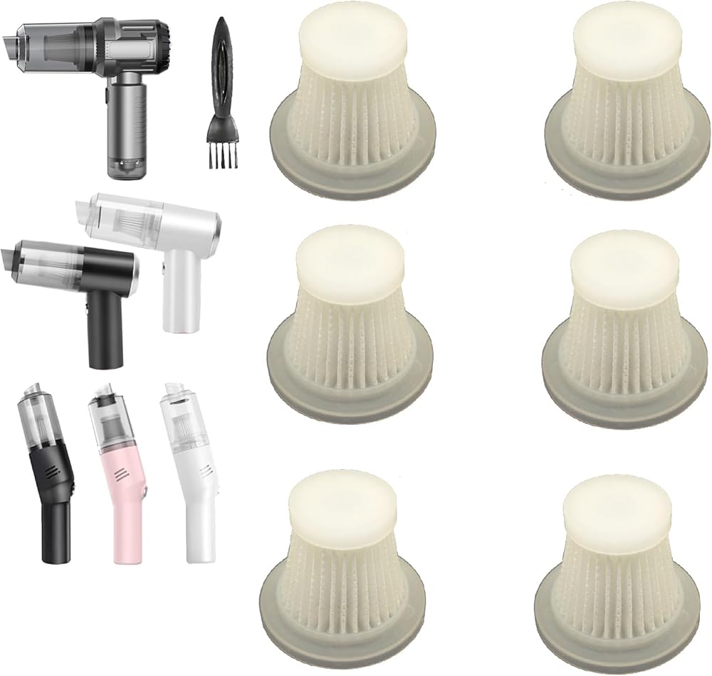 👍【What's Included in Package】6 sets of Filters and a small brush, it can ensure your car vacuum has good suction performance in 1 year.