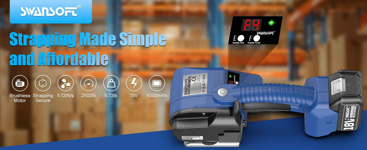SWANSOFT Electric Strapping Tool with 2 * 18V 5Ah, Electric Strapping Machine for 0.51" - 0.63" PP PET Straps Banding Strapping Tool for Packaging Box Pallet