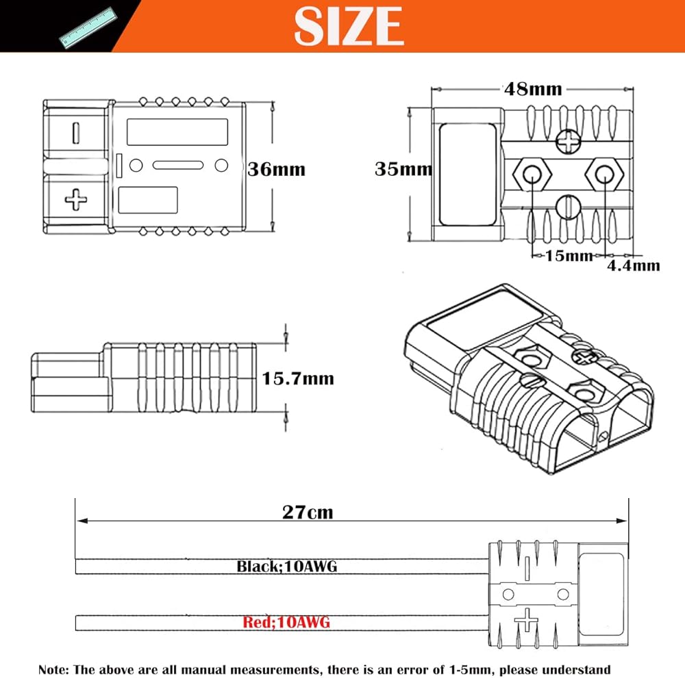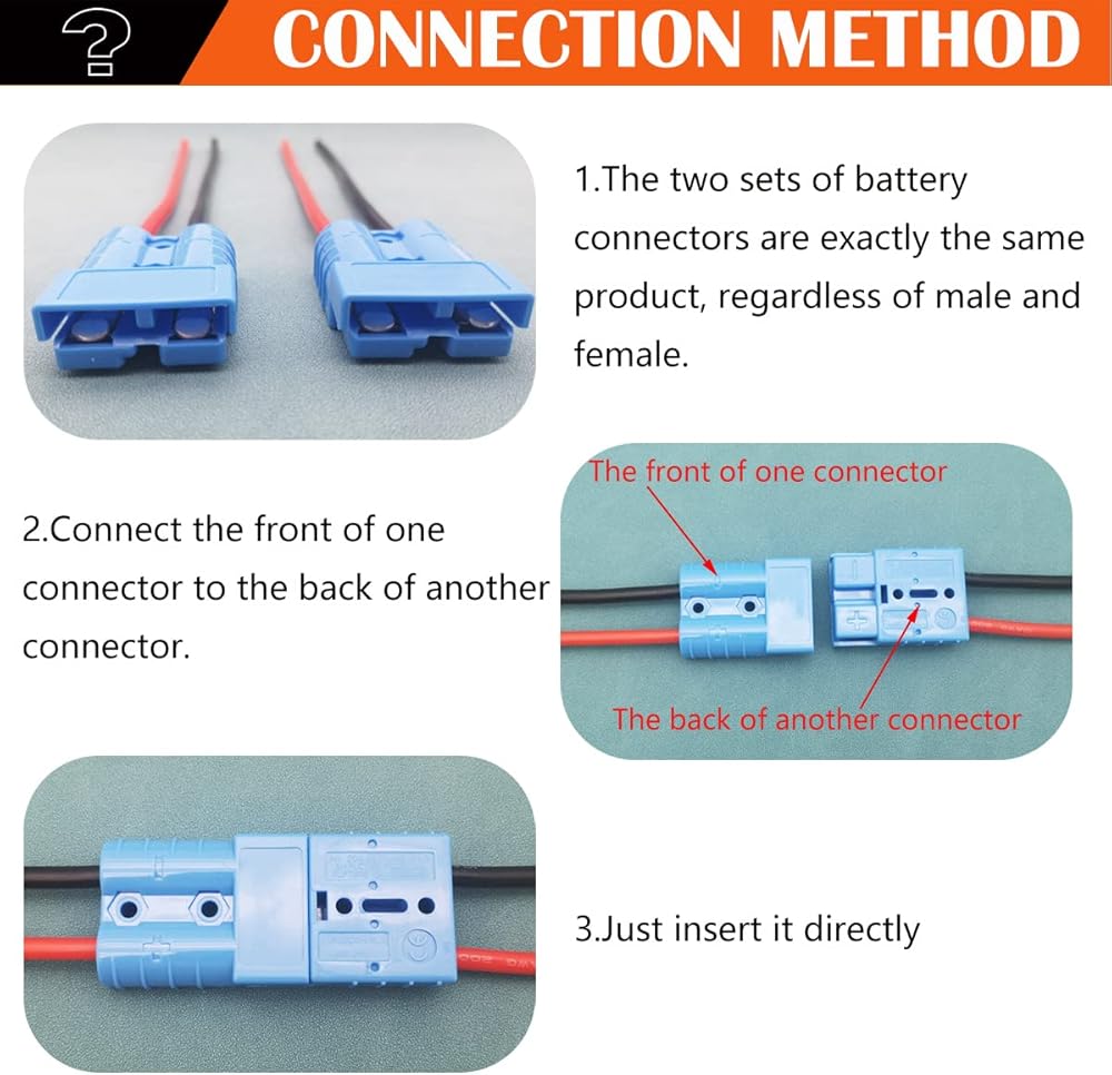 • نقاط المنتج: مجموعتا موصلات البطارية هما نفس المنتج تمامًا، بغض النظر عن الذكور والإناث، يمكن إدخال اثنين مباشرة. تم وضع علامة على أغلفة الموصل بـ "+" (إيجابي)، "-" (سلبي)، لاحظ أن "+" يتصل بـ "+" و"-" يتصل بـ "-" عند توصيله. (يتم توصيل جانب واحد من الموصل بجانب موصل آخر يدور 180 درجة)
