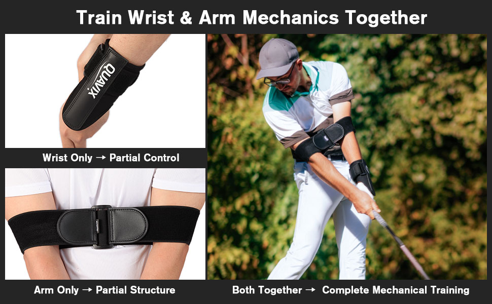 مجموعة مدرب جولف سوينغ - مدرب المعصم وحزام الذراع للمساعدة في تدريب الجولف على ممارسة التأرجح، مساعد تدريب المعصم قابل للتعديل وشريط توصيل الذراع للاعبي الجولف المبتدئين والمتوسطين