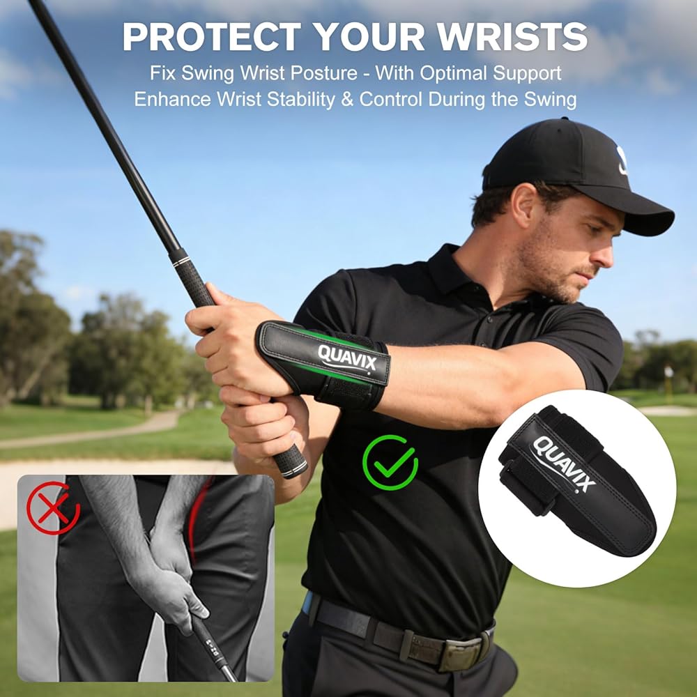 مدرب المعصم للتحكم بشكل أفضل في وجه النادي: يساعد مدرب المعصم للجولف على توجيه وضع المعصم المناسب والثبات خلال التأرجح. يوفر دعمًا إضافيًا لتشجيع زاوية معصم أكثر اتساقًا، مما يساعد لاعبي الجولف على تحسين التحكم في وجه النادي وتحقيق اتصال أكثر اتساقًا بالكرة أثناء التمرين.