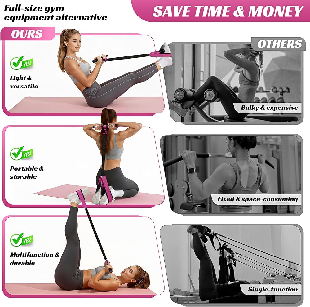【الحل الكامل لمعدات البيلاتس والجسم بالكامل 】أكثر من مجرد أحزمة مقاومة بمقابض، فإن نظام تمرين السحب الأنيق متعدد الاستخدامات هذا هو معدات البيلاتيس الكل في واحد ومدرب القوة. إنه يتيح مجموعة واسعة من الحركات للذراعين والظهر والساقين والأرداف، ويدمج بسلاسة أشرطة المقاومة للتمرين في روتين اليوغا أو البيلاتس أو العلاج الطبيعي لتكييف الجسم بالكامل.