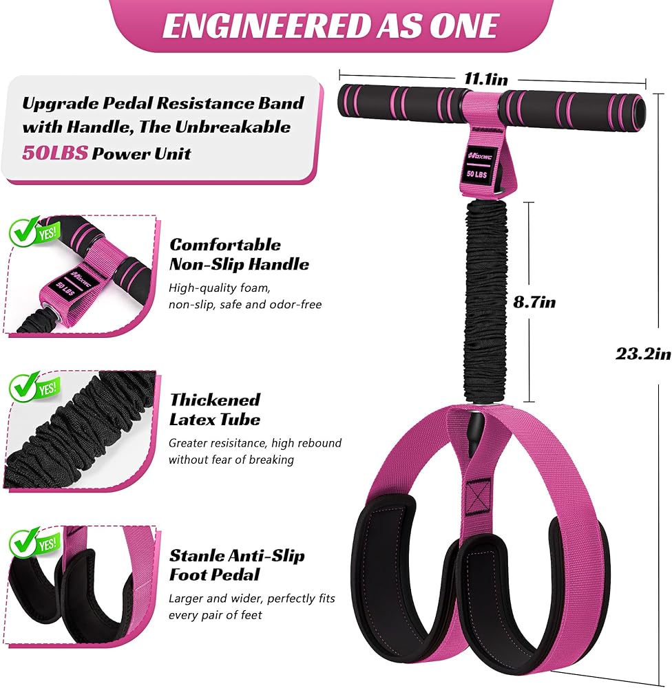 【حزام مقاومة دواسات متعدد الوظائف مع مقبض】يوفر حزام مقاومة الدواسات الكل في واحد مع مقبض قوة قوية تبلغ 50 رطلًا في تصميم وردي أنيق مصنوع للنساء. يدمج جهاز مقاومة الدواسة الأنبوبية قلبًا سميكًا من اللاتكس ودواسة قدم واسعة ومقابض مريحة في وحدة واحدة غير قابلة للكسر، مما يوفر ثباتًا لا مثيل له لجلسات الجلوس الجادة ومعدات تمرين الجسم بالكامل التي تنافس آلات الصالة الرياضية المنزلية الضخمة.