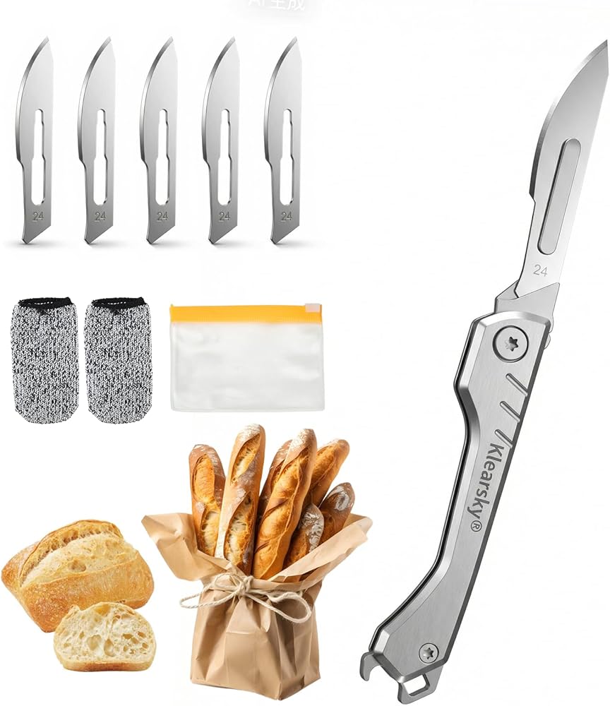 【مجموعة تسجيل الكل في واحد: 】تتضمن سكين خبز قابل للطي، و5 شفرات قابلة للاستبدال، و2 أكمام لحماية الأصابع. لا حاجة للشحذ، فقط قم بتبديل الشفرات. تأتي مع حقيبة تخزين متينة صالحة للطعام لتخزين آمن ومرتب. مثالية لأدوات العجين المخمر ومستلزمات الخبز العامة.