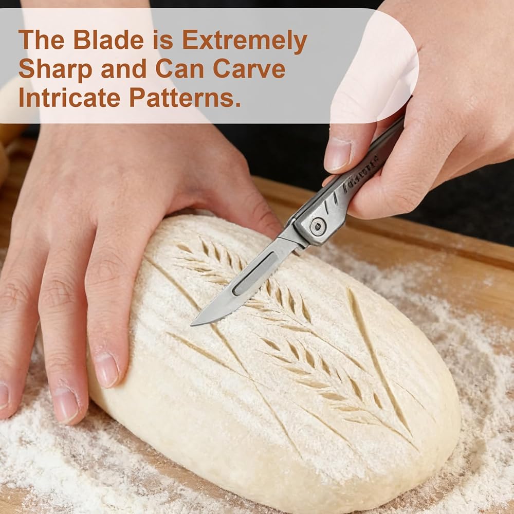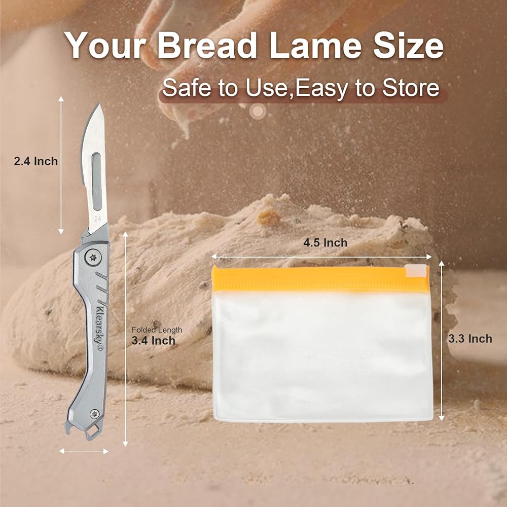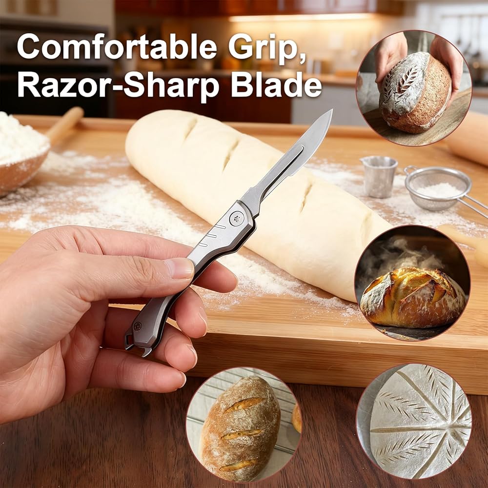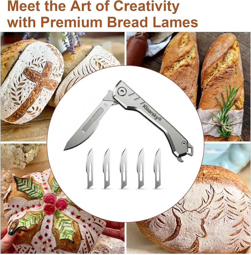 نموذج جديد لعام 2026 من الخبز الفاخر - أداة احترافية قابلة للطي لتسجيل العجين مع شفرات من الفولاذ الكربوني الآمن غذائيًا، و5 شفرات بديلة إضافية، وتصميم آمن ومقبض محكم