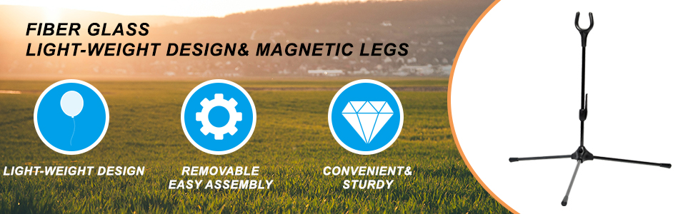 - 🏹تصميم خفيف الوزن، أرجل مغناطيسية لسهولة التجميع، مشبك شريط من النايلون، حامل علوي من النايلون.