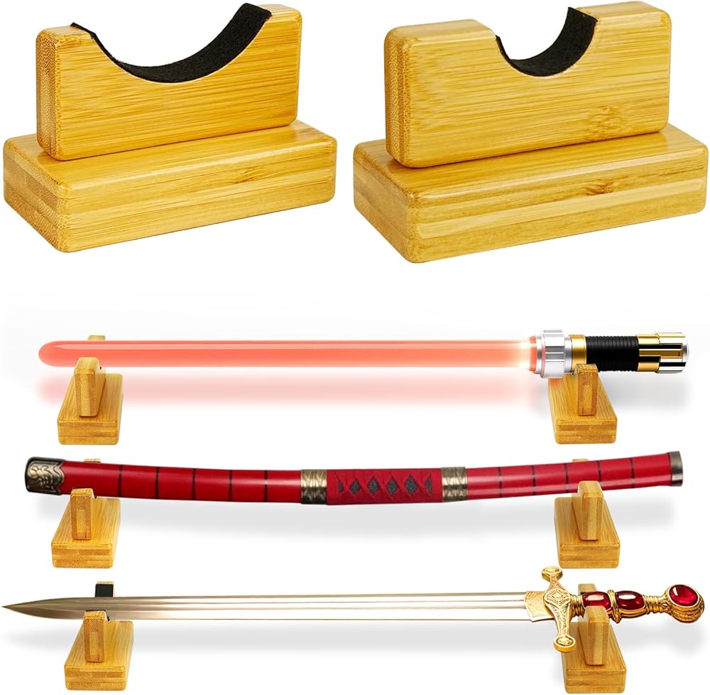 Durable Bamboo Construction: Made from premium bamboo, this katana stand is extra sturdy and crack-resistant, providing reliable support for your valuable swords and lightsabers—perfect for long-term display