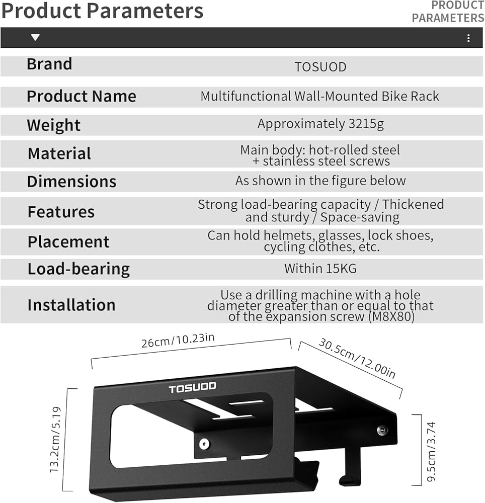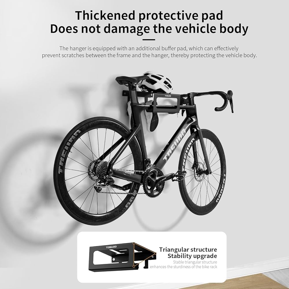 ثبات احترافي، سعر ذكي ذو قيمة تم تصميمه ليتحمل ما يصل إلى 15 كجم (33 رطلاً)، رف الدراجة المثبت على الحائط هذا مصنوع من الفولاذ القوي المدلفن على الساخن. تحمي البطانة الإسفنجية المقاومة للخدش سطح دراجتك، وتوفر حل تخزين آمن ومنظم لدراجتك وخوذتك وأحذيتك ومضختك.
