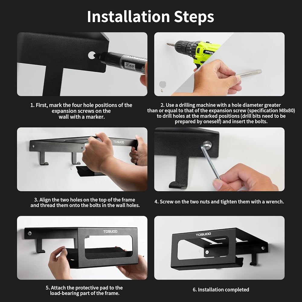 تصميم قوي وصديق للإطار يتميز هذا الحامل بوزن 3.2 كجم من الفولاذ الصلب ومسامير التمدد من الدرجة الصناعية، ويوفر تثبيتًا ثابتًا على الجدران الخرسانية أو المسامير. الرغوة الناعمة السميكة تحتضن الإطار بلطف، مما يجعله خيارًا مناسبًا لمجموعة من الدراجات، بما في ذلك تلك ذات الإطارات الكربونية.