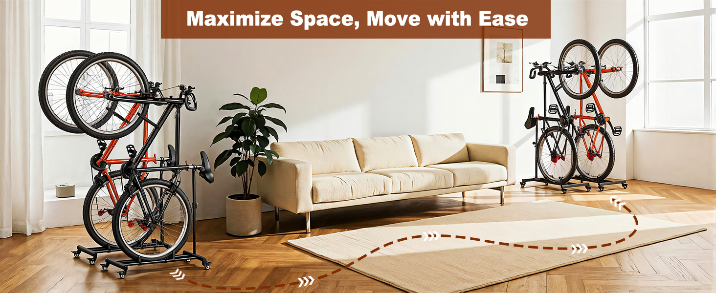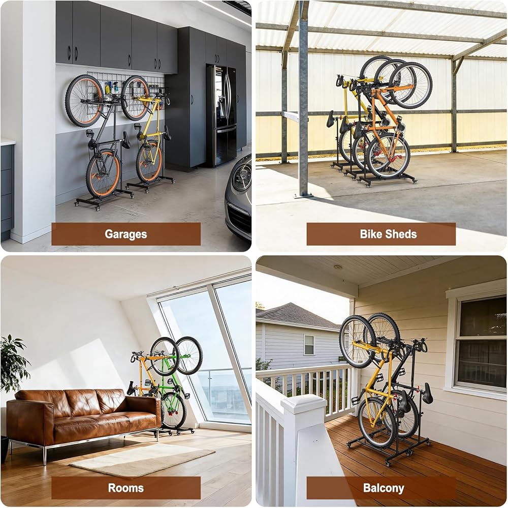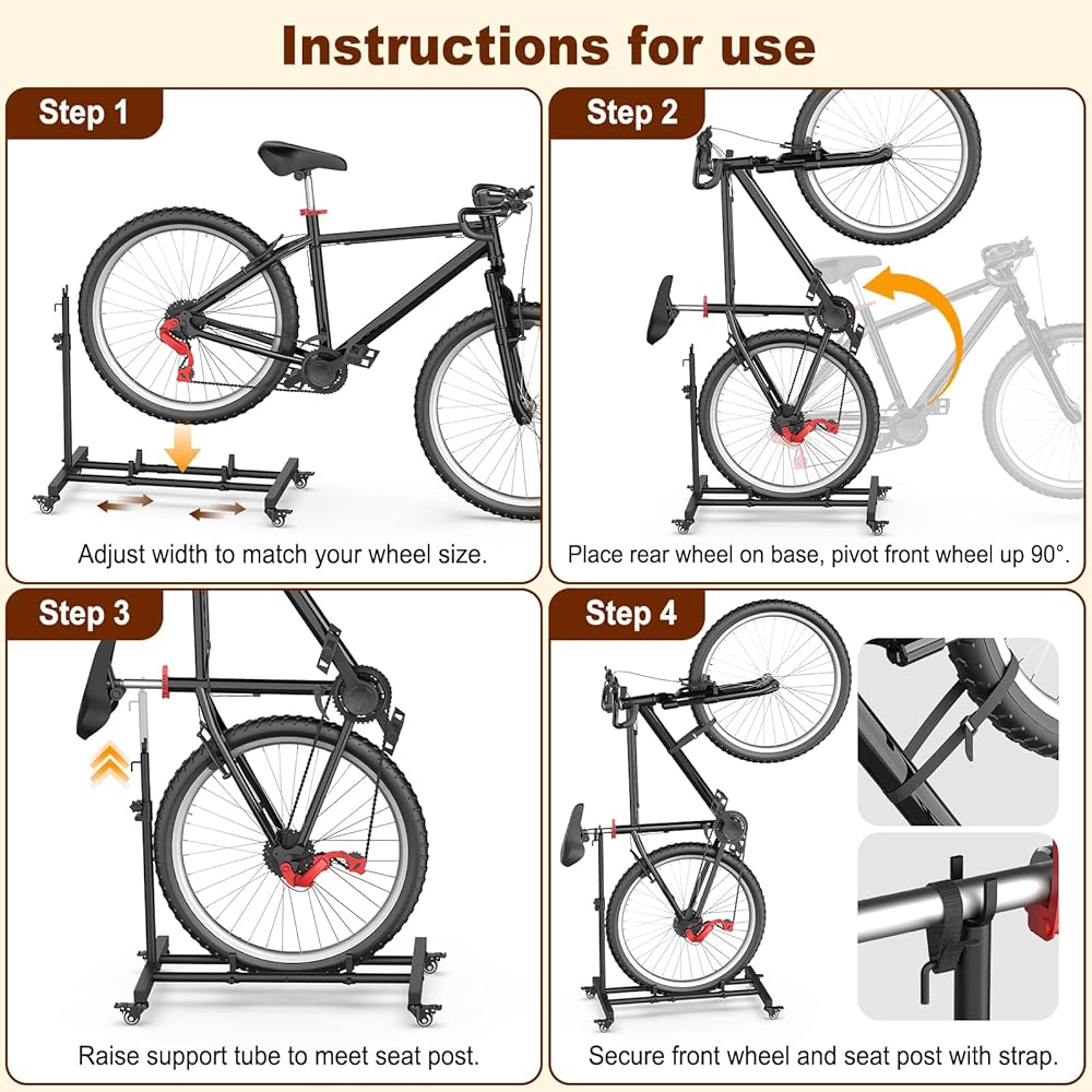 【عجلات قابلة للقفل بزاوية 360 درجة لسهولة الحركة】: يتميز رف الدراجة القائم بذاته بأربع عجلات قابلة للقفل بزاوية 360 درجة، مما يسمح لك بتحريك دراجتك دون عناء بين المرآب أو الشقة أو مساحات الفناء. يتم تثبيت كل عجلة بشكل آمن في مكانها لمنع التدحرج غير المرغوب فيه أثناء توزيع وزن الرف لتعزيز الثبات أثناء ركن السيارة أو إعادة تحديد موضعها. يضمن التصميم السلس حلول تخزين مريحة أينما كنت في حاجة إليها.
