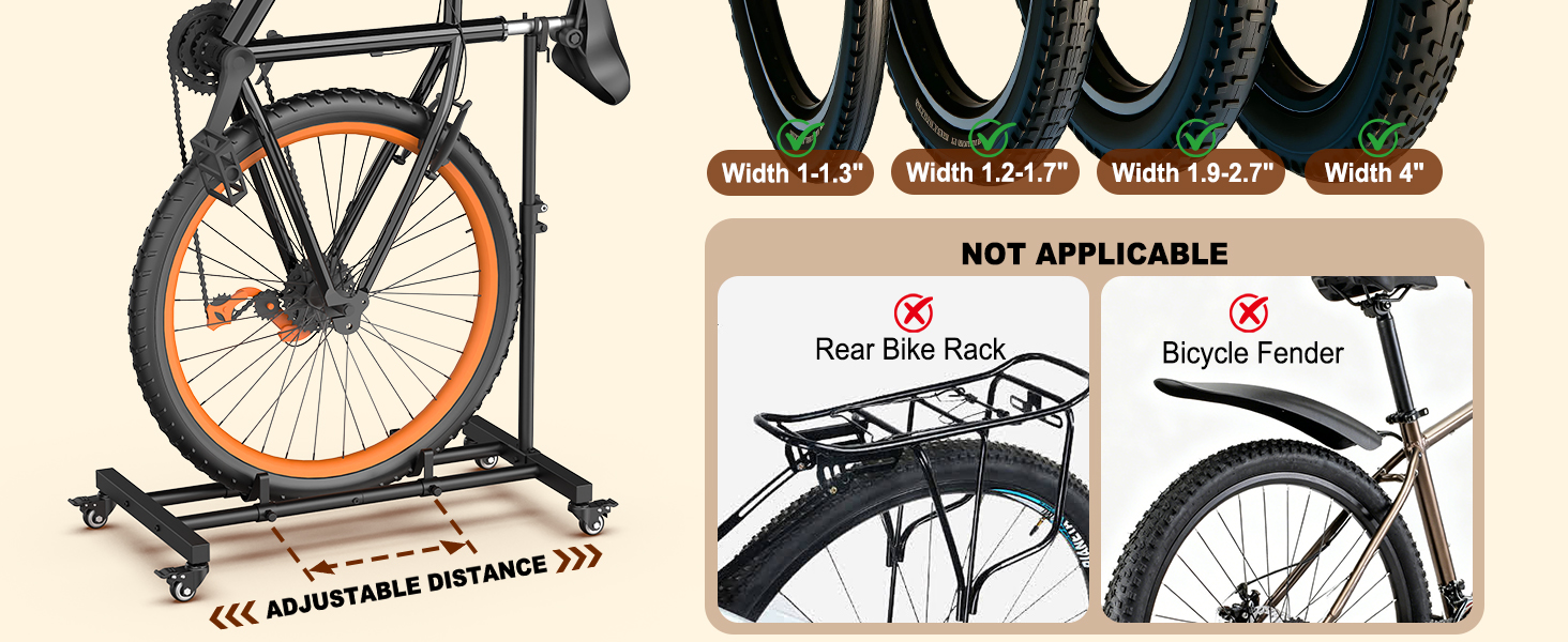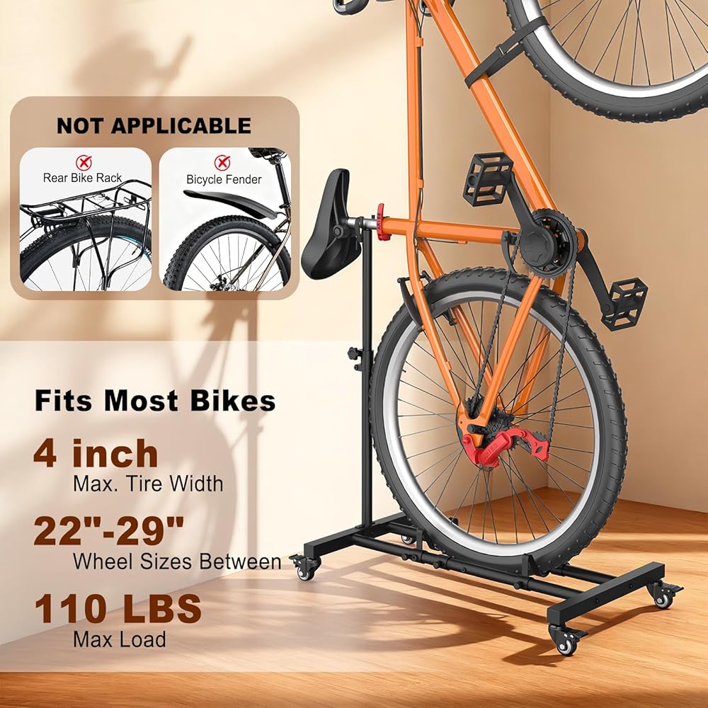 توافق عالمي للدراجة: مصمم ليناسب معظم أنماط الدراجات، هذا الرف الرأسي يناسب الإطارات التي يصل عرضها إلى 4 بوصات ويدعم العجلات من 24 بوصة إلى 29 بوصة للدراجات الجبلية ودراجات الطرق ودراجات الأطفال. مع سعة وزن قصوى تصل إلى 60 رطلاً، يوفر قضيب الرفع القابل للتعديل أوضاع ارتفاع غير محدودة للتخزين المخصص. يرجى ملاحظة: غير متوافق مع الدراجات المجهزة بمصدات أو سلال أو مساند.