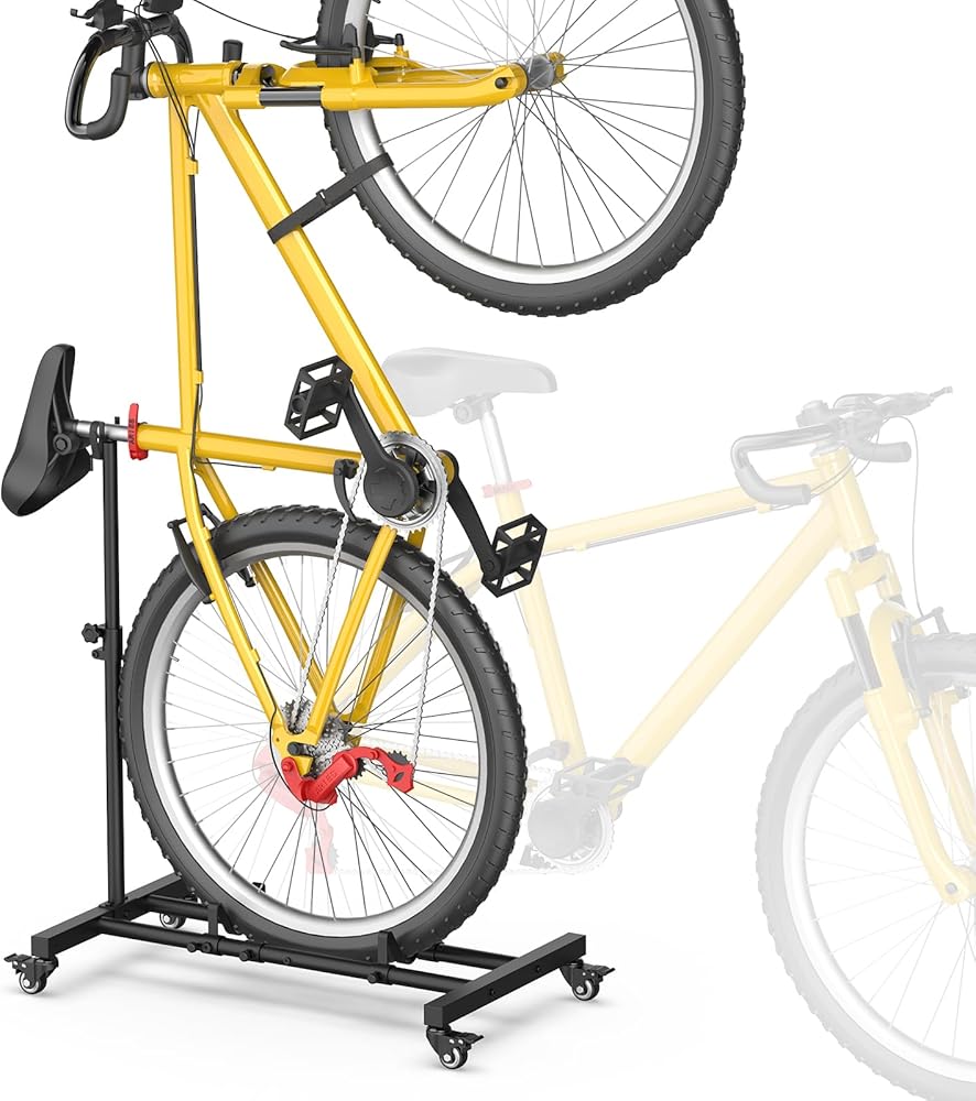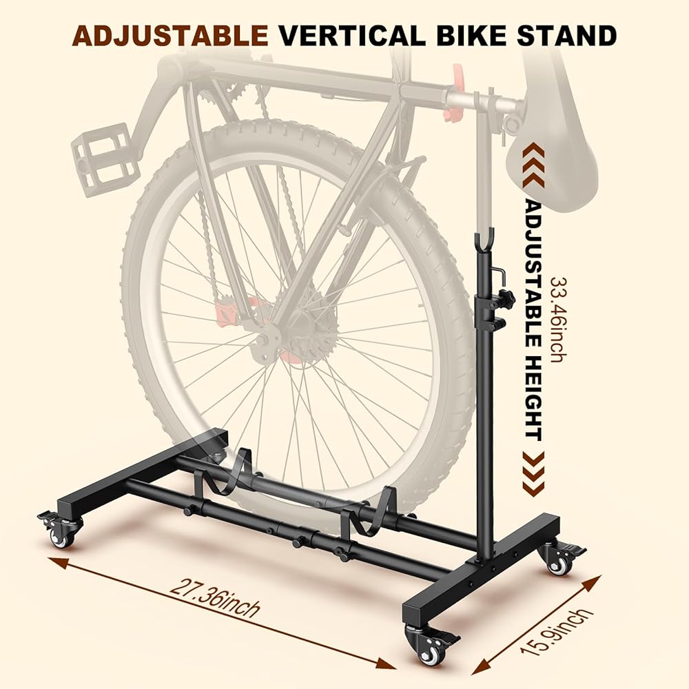 حامل دراجة عمودي، حامل أرضية للدراجة قائم بذاته مع ارتفاع قابل للتعديل، حامل دراجة داخلي موفر للمساحة للمرآب والشقق، متوافق مع عجلات دراجات MTB ودراجات الطرق حتى 29 بوصة